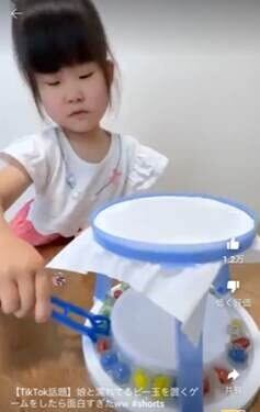 リンクが破れてビー玉が落ちた時にトングを持っていた人が負け。