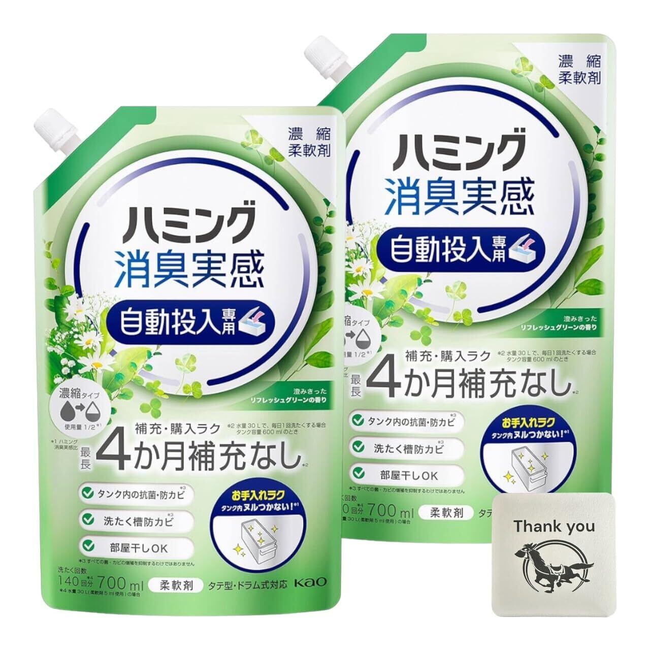 ハミング 柔軟剤 消臭実感 自動投入 専用処方でお洗たくがもっとラクになる 澄みきったリフレッシュグリーンの香り 700ml 2袋セット + Kunutonnオリジナルロゴ入りおまけ付 | impsmile