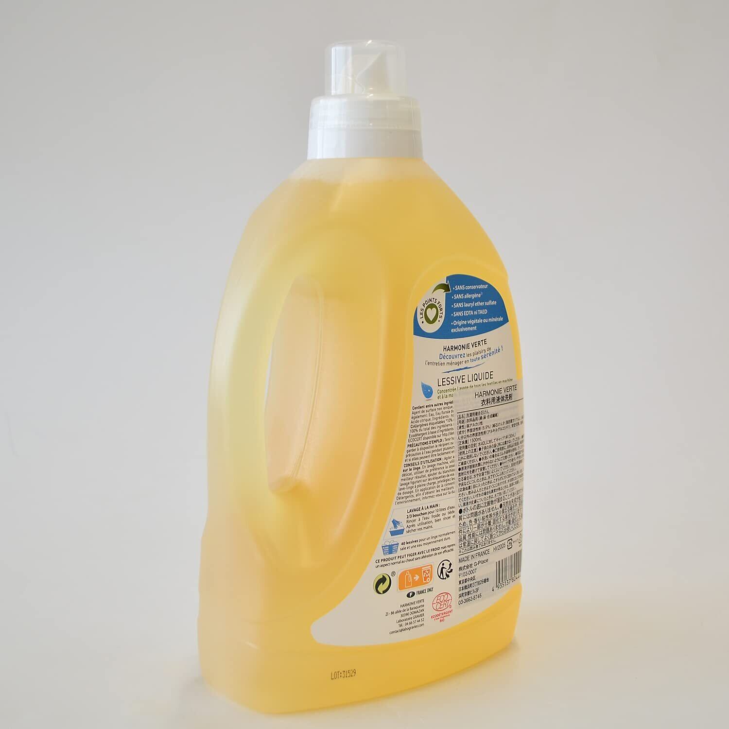 アルモニベルツ(HARMONIE VERTE)衣料用液体洗剤 1.5L 洗濯用洗剤 洗濯洗剤 オーガニック洗剤 無添加 エコ洗剤アルモニベルツ 単品