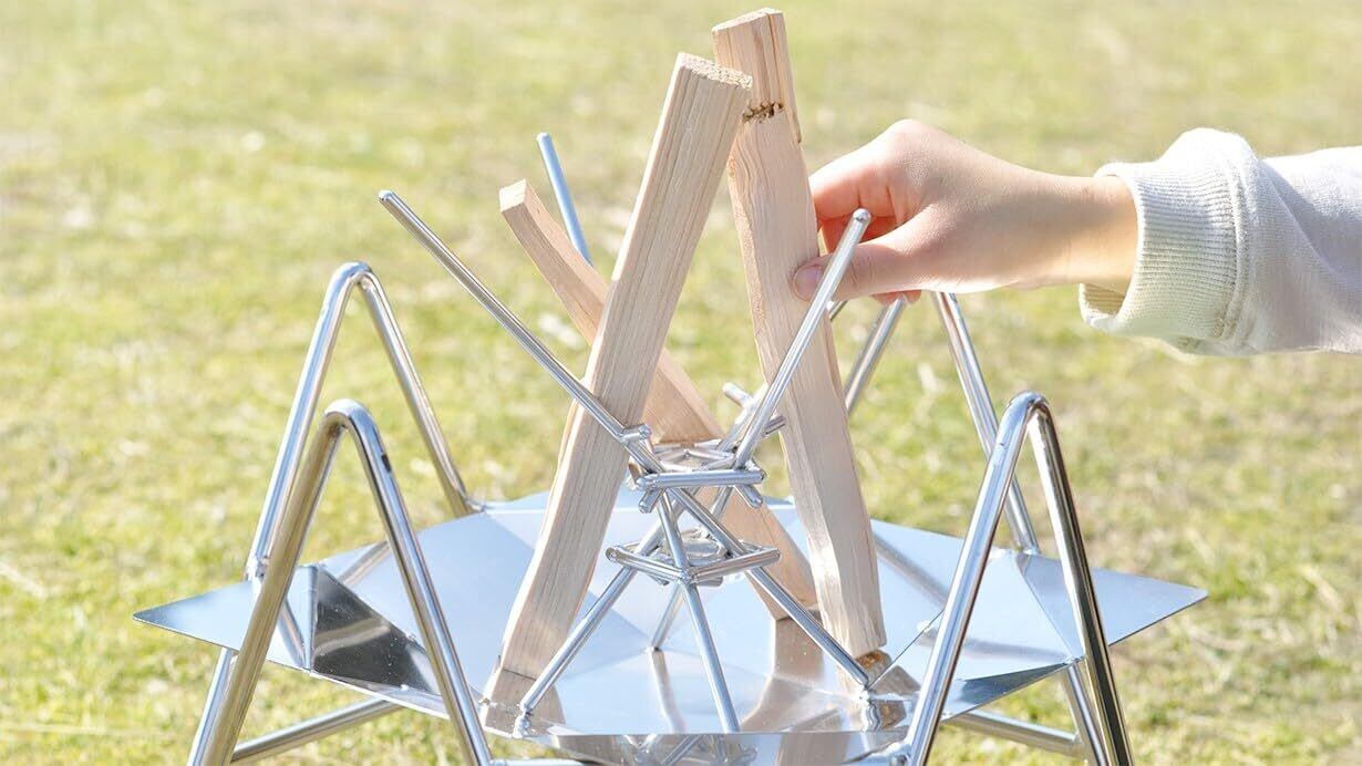 組立1秒、ねじるだけ!薪を立て掛ければ、美しい炎へ導くティピー型の完成!
