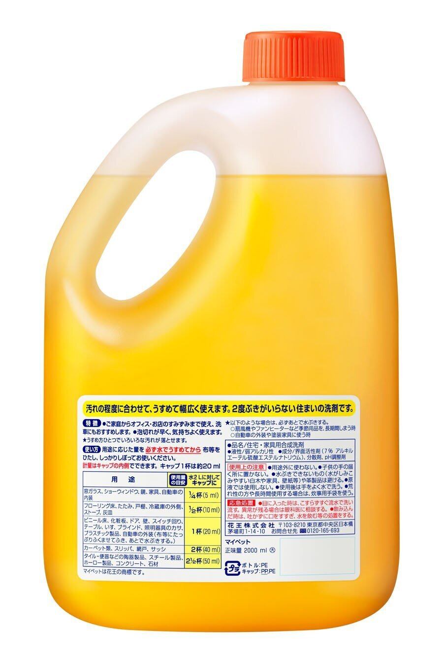 床、たたみ、カーペットや家具、電気製品など住まいのいろいろなふきそうじに。汚れにあわせて希釈してお使いいただけます。