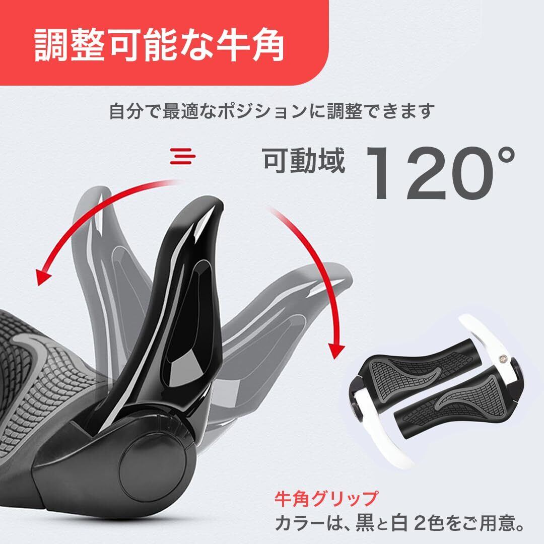 【一般的なハンドルに対応】このグリップには牛角と呼ばれるパーツが付いており、これにより上り坂や急な加速時に力を最大限に活用することが可能です。牛角によって、力強いペダリングが実現し、さらにその角度を最大120°まで調整できるので、個々のライダーの好みに合わせた設定が可能です。エルゴハンドルグリップは、直径22.2mmの一般的な自転車ハンドルに装着でき、グリップ自体の長さは14cm、グリップから牛角部分の高さは10cmです。購入前には、必ず手持ちの自転車の寸法を確認してください。