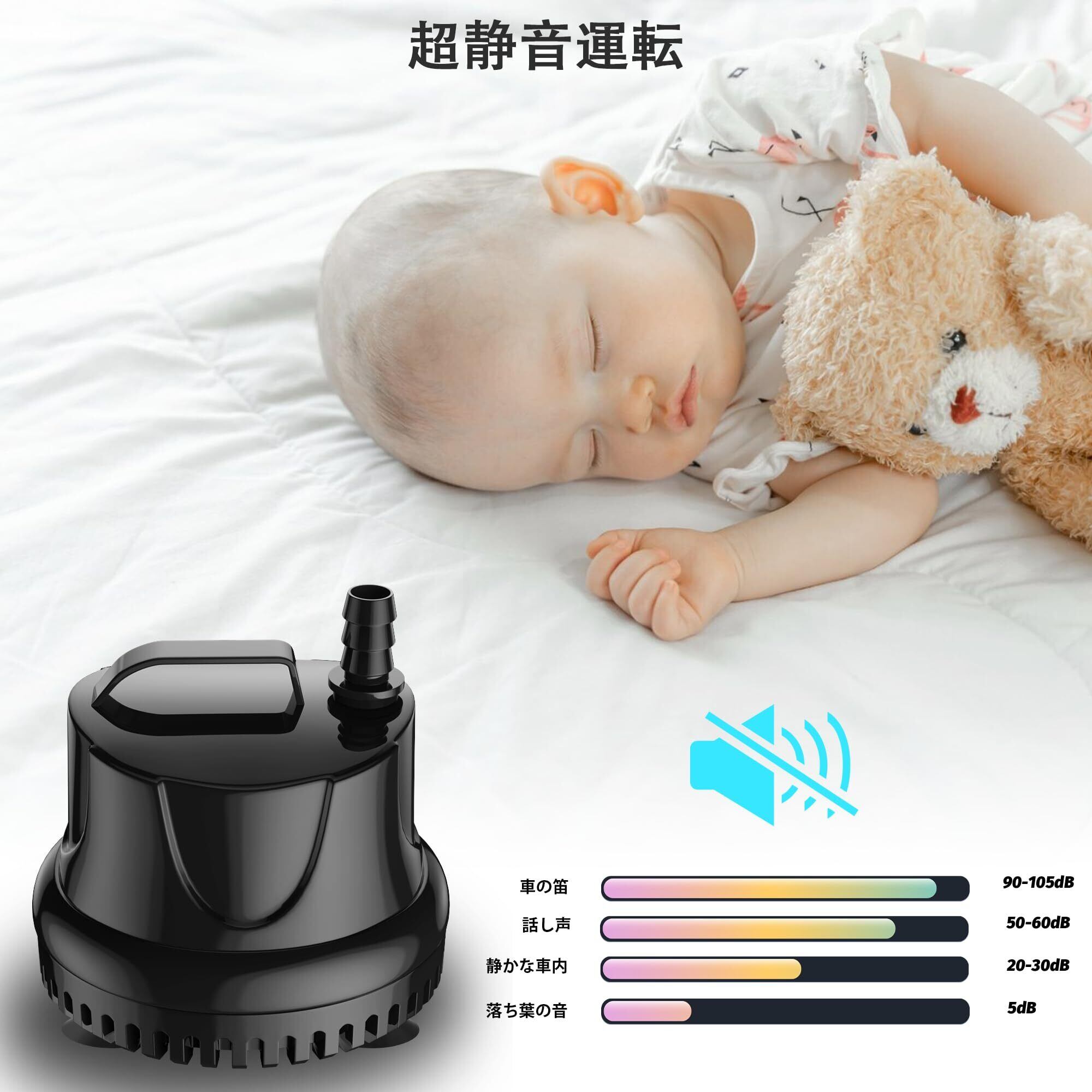 超静音動作: 超静音のミニ水槽 ポンプ、内部にモーター音がなく、静かな環境を提供します。4つの強力な吸盤により、ガラス面にしっかりと垂直または水平に取り付けることができます。