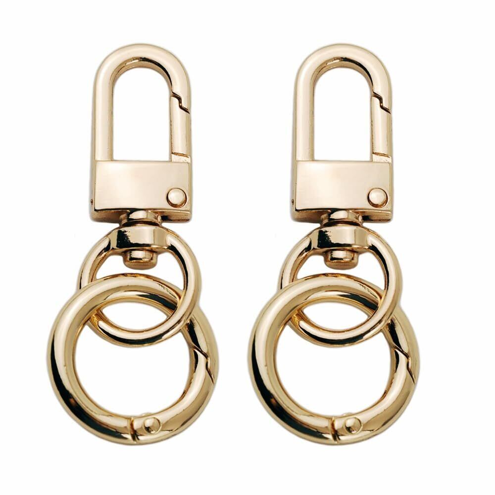キーホルダー 金具 ナスカン マルカン付き 2個入り キーリング 回転フック 丸カン付き キーホルダーパーツ ハンドメイド アクセサリーパーツ 手作り 手芸用品 素材 スプリング (ゴールド)
