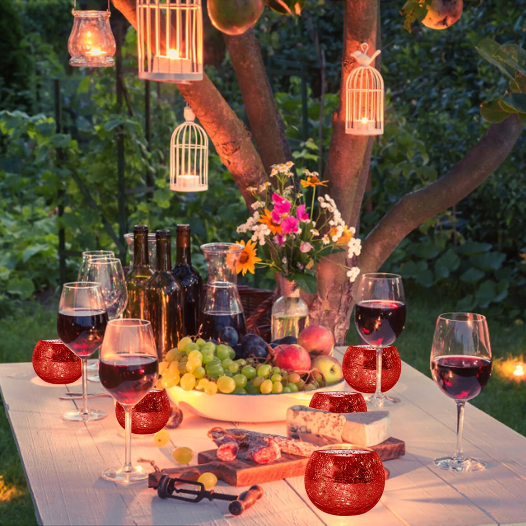HeeNia キャンドルカップ キャンドルホルダー キャンドルスタンド 燭台 キャンドルグラス ボールカップ ステンドグラス 照明/結婚式飾り/誕生日/プレゼント/ホームインテリア/バー/写真小道具/室内/室外 - レッド | impsmile