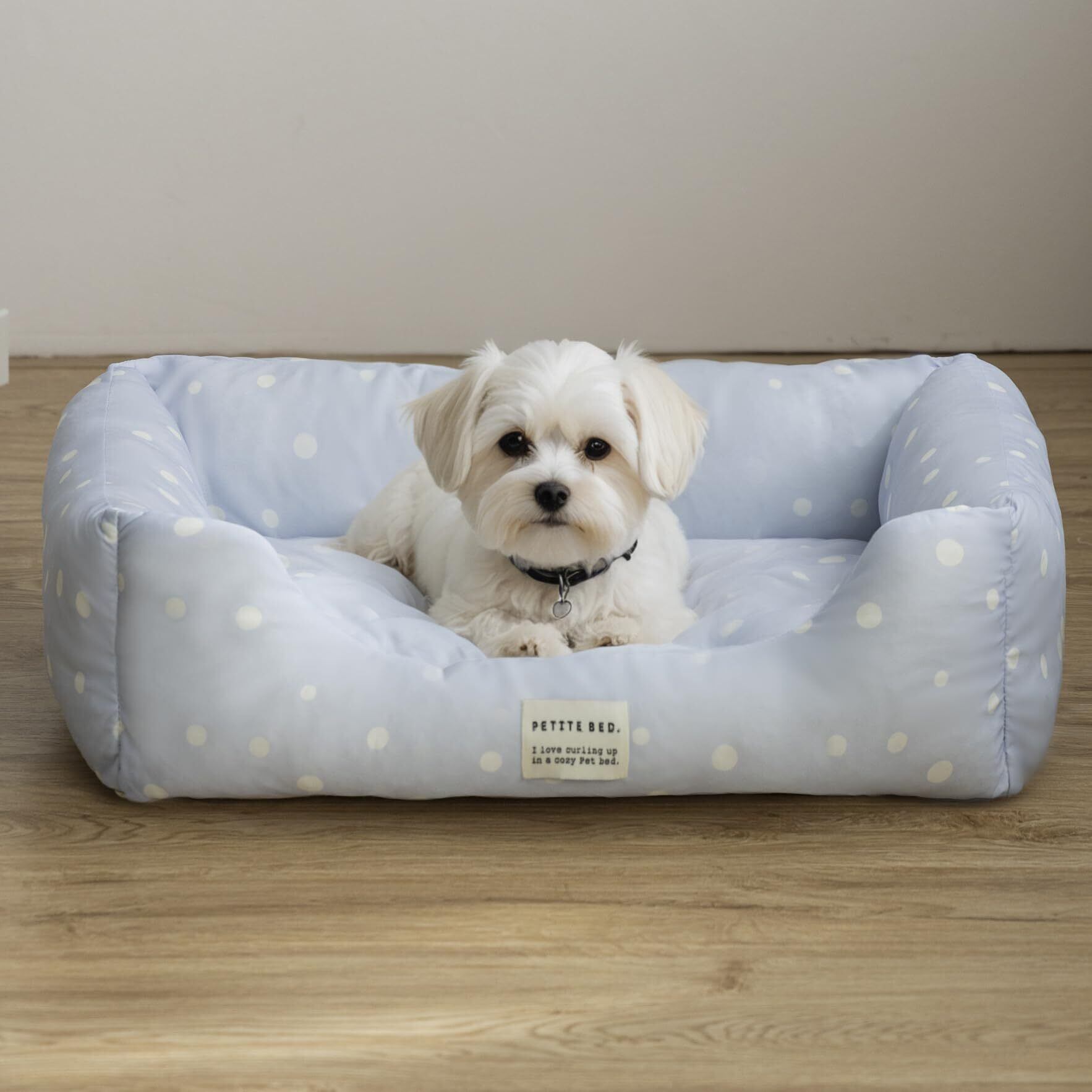 洗える 犬用 冷感スクエアーベッド ペットベッド [ リバーシブル仕様の座面クッション ] ひんやり 冷感 犬ベッド 猫ベッド (Sサイズ、水玉柄ブルー)