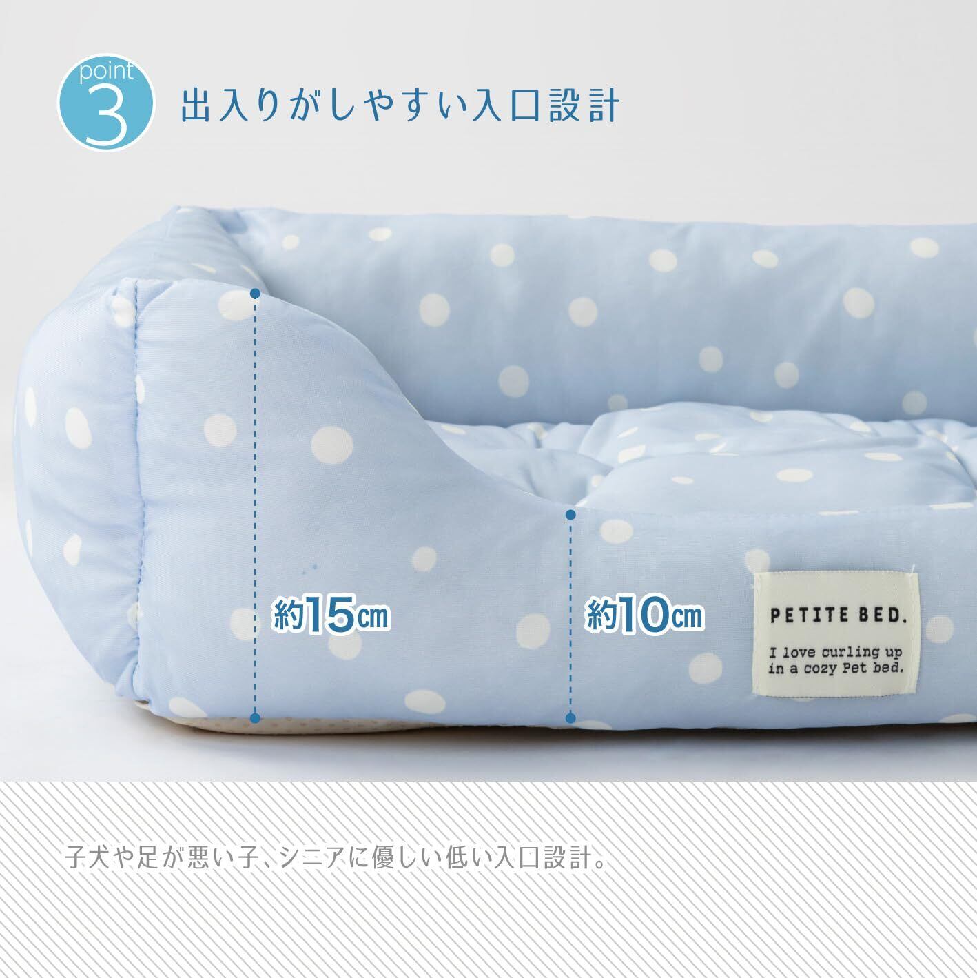 【年齢問わず使いやすい】出入りしやすい約10cmの低い入口設計は、パピーからシニア犬まで使いやすく、犬用の介護ベッドとしてもおすすめ。洗える犬用ベッドとしてだけでなく、猫ベッドとしても快適な構造が嬉しいペットベッド(冷感)です。