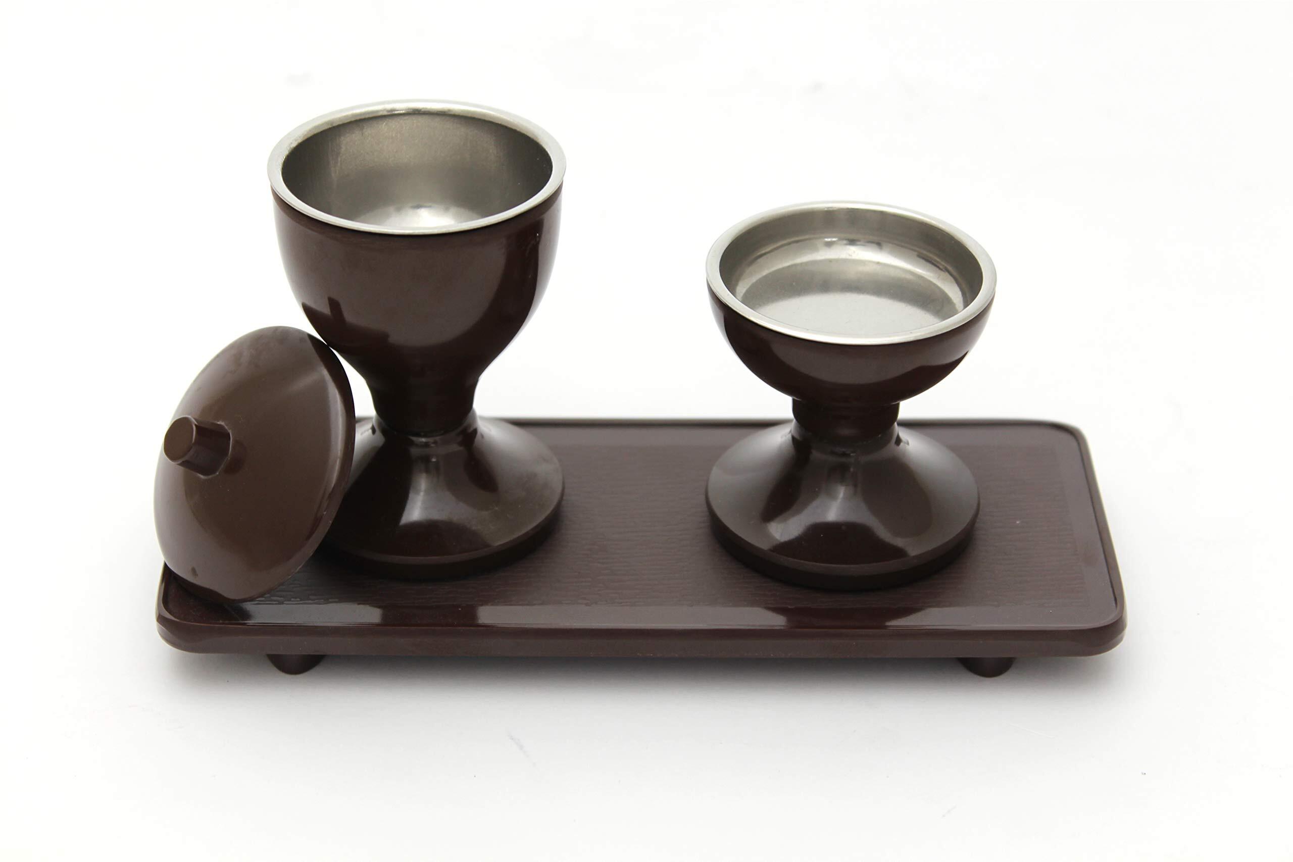 ミニ仏壇専用 創価学会 安穏の音色 錆びないリン 水入れ ご飯 お盆 花瓶 シキビ 電気ろうそく 仏具 7点セット 茶