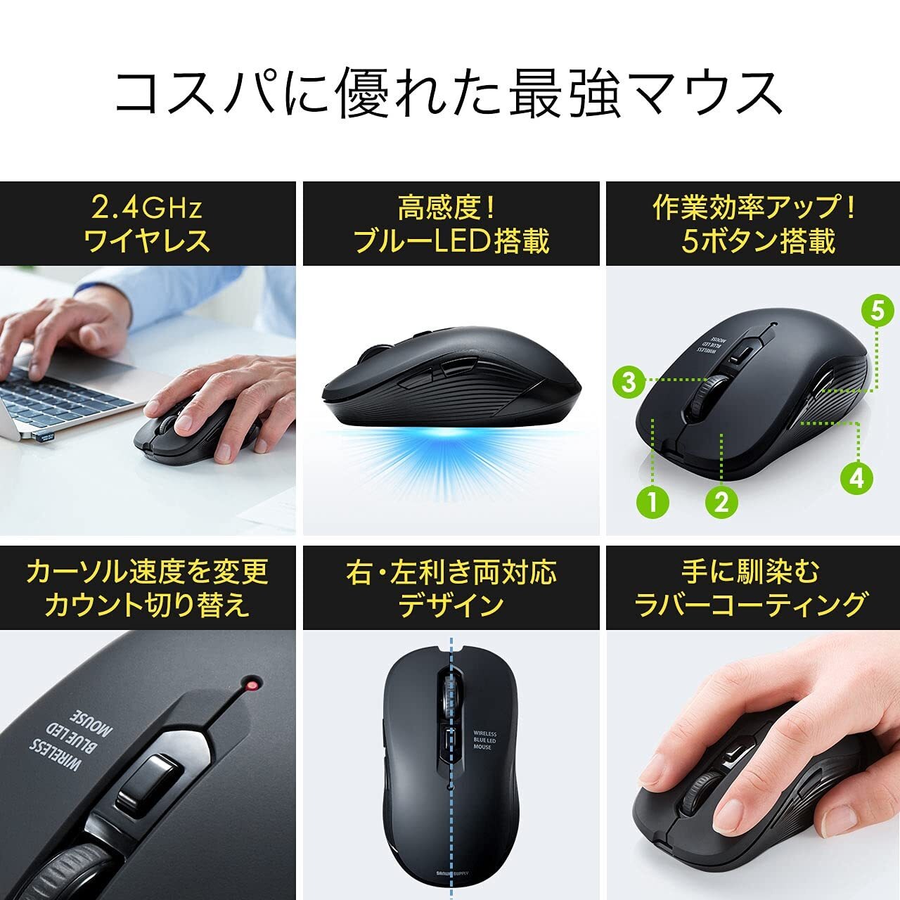 サンワダイレクト ワイヤレスマウス type-c 無線マウス 5ボタン (戻る/進むボタン搭載) ブルーLED iPad Pro/Mac/Win/Android対応 dpi切替 400-MAWC097BK | impsmile
