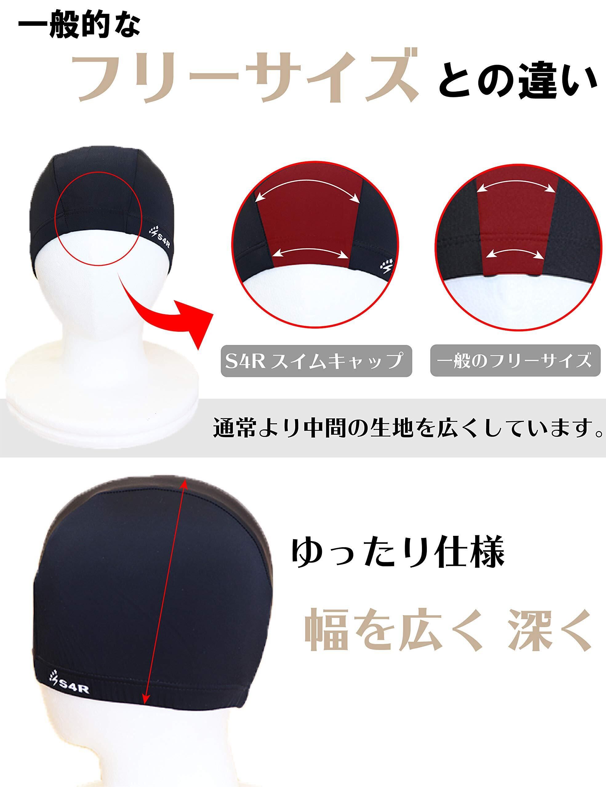 S4R(エスフォーアール) スイムキャップ 水泳帽 水泳キャップ スイミングキャップ 大人 子供【ゆったりサイズで圧迫感ゼロ!】レディース メンズ (競泳・フィットネスに最適!) スイミング 帽子 55cm~66cm