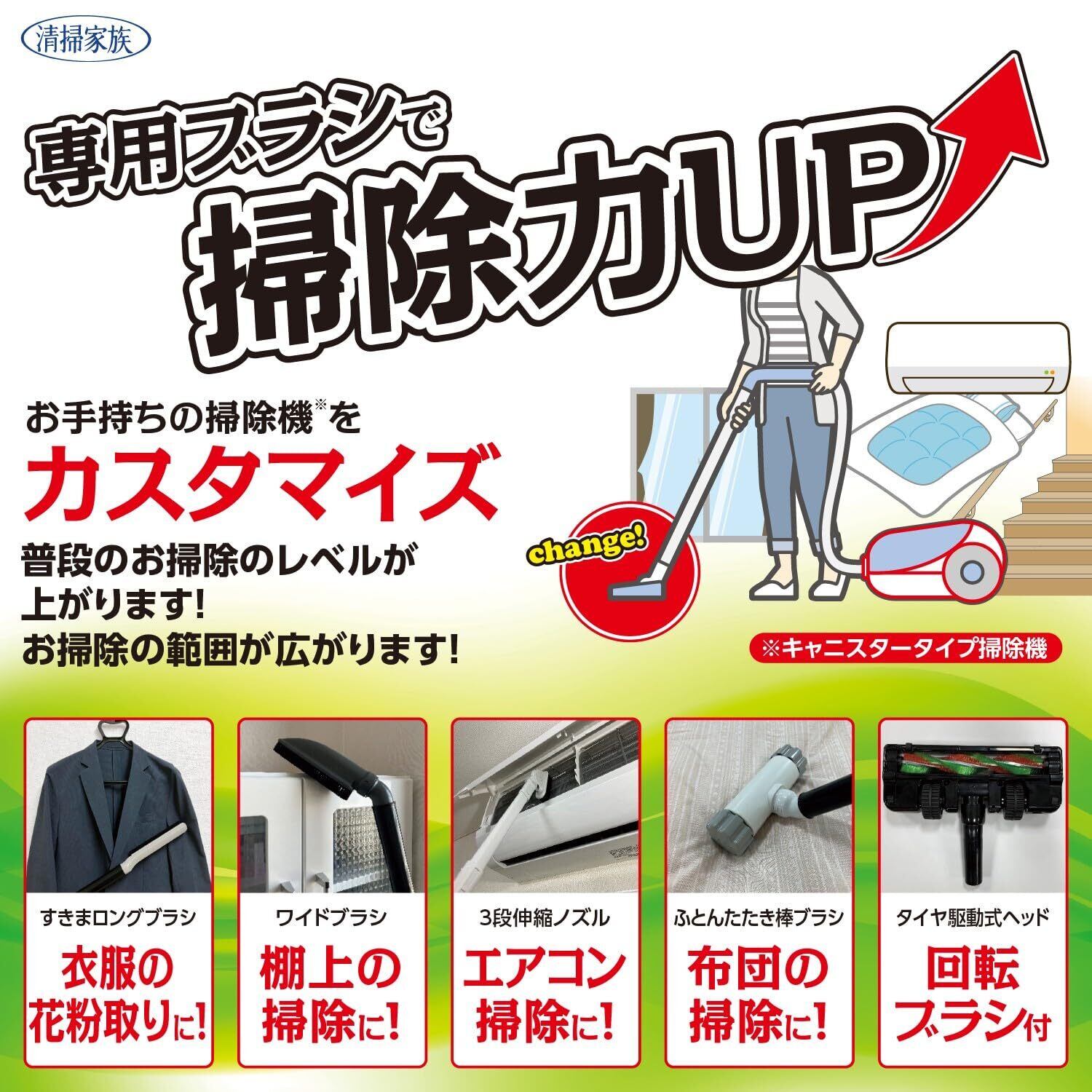 清掃家族 コーワ すきまロングブラシ 35113 各社対応 汎用 【3.2~3.8㎝の管に対応】細長 狭い隙間も簡単お掃除 クリーナーアクセサリー