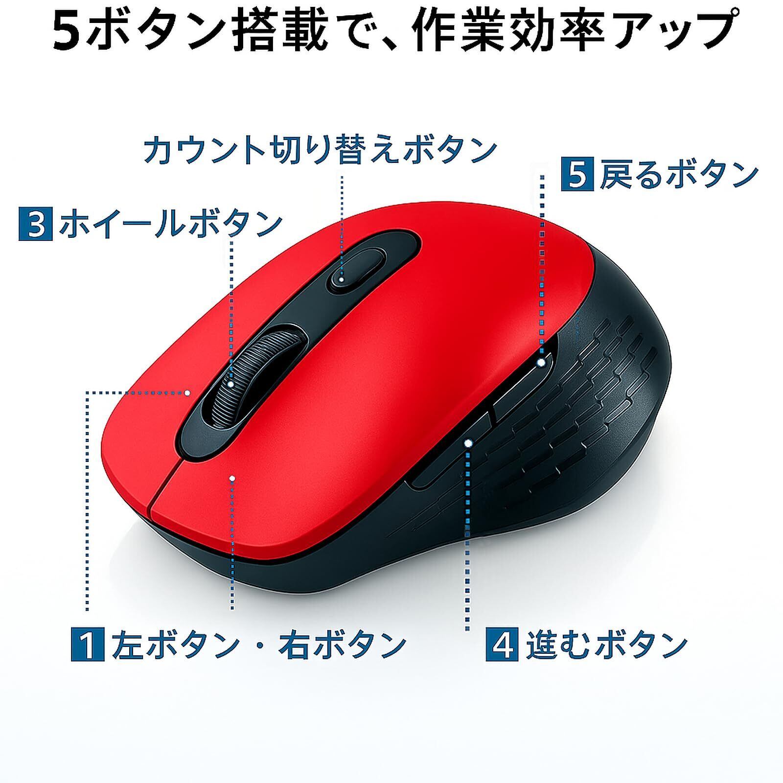 ワイヤレスマウス bluetooth 5.2 + 2.4GHz 無線 静音 Type-C充電式 小型 戻る/進むボタン搭載 6ボタン 5DPI切替 3台デバイス同時接続可能 4000 DPI ゲーミングマウス 握りの極み デュアルモード Windows Mac iPad OS iOS Android ChromeOS対応 (NO.1 レッド)