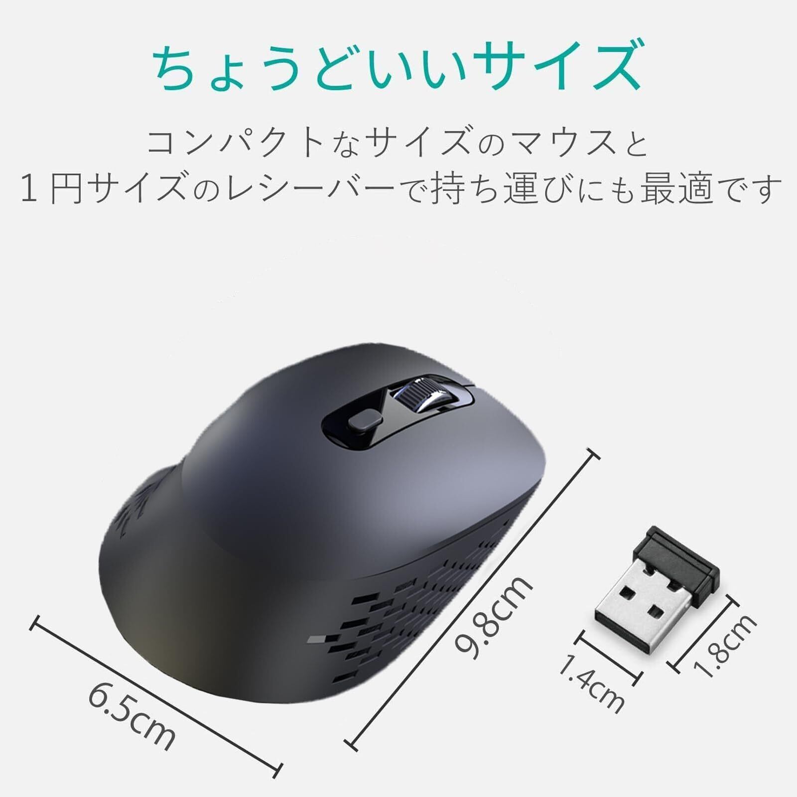 マ1ルチペアリングとデュアルモード接続(内蔵レシーバー):無線マウスSD-V8は、Bluetooth接続とUSBレシーバーを使用した2.4GHz接続の両方に対応したデュアルモードのワイヤレスマウスです。最大3台のデバイスと接続でき、スマホやパソコンの間で自由に切り替えることができます。マルチデバイスとの接続時の不要な手間を省くことができます。また無線接続の範囲は最大10mです。【注意】:USB レシーバーはマウスの内部にあります。