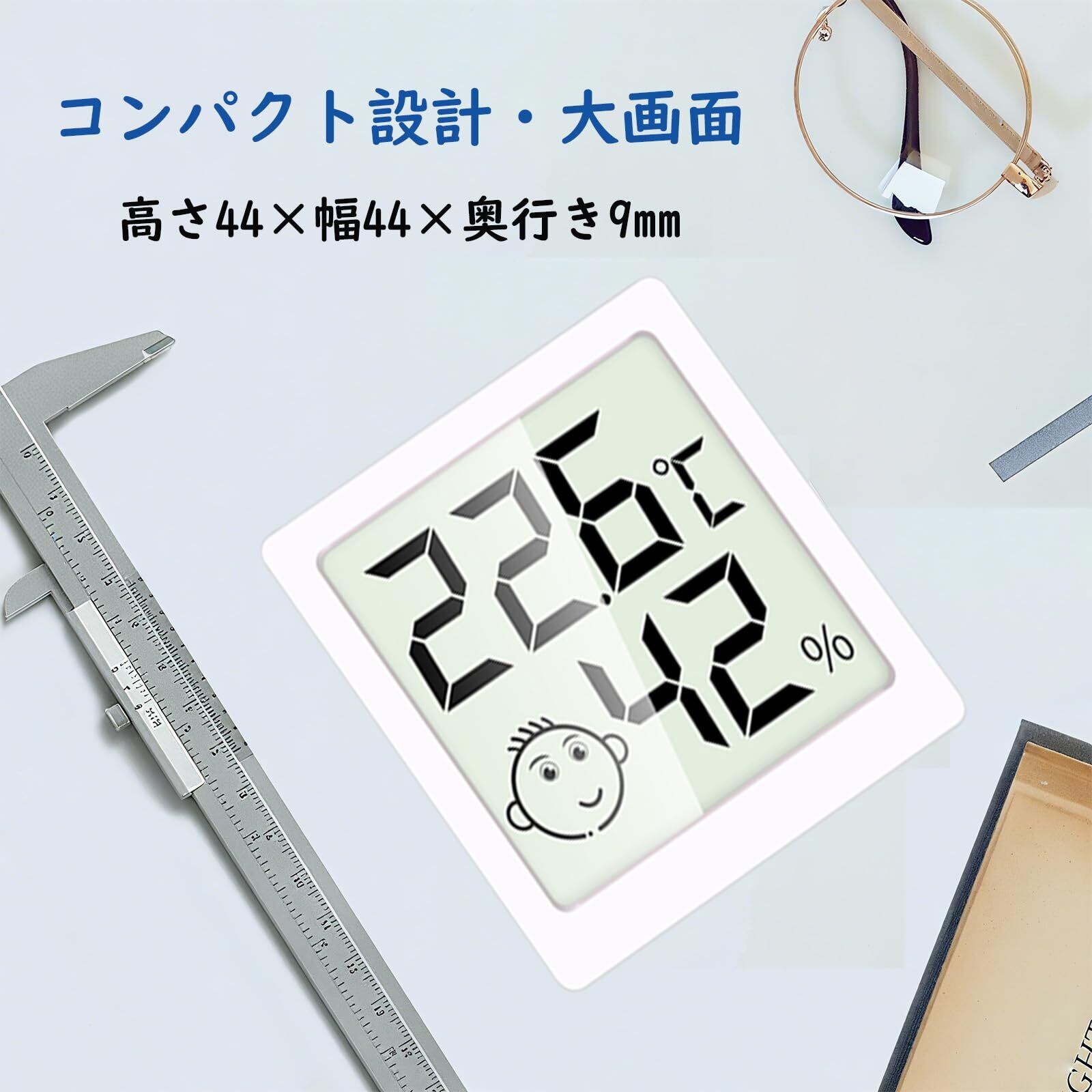 デジタル温湿度計 LCD大画面 省電力 高精度 背面ステッカー付き 湿度計 温度計 コンパクト シンプル 手のひらサイズ 快適度顔表示付 華氏変換 室内用 卓上スタンド マグネット 壁掛け式 高齢者・子供部屋・家庭対応 熱中症対策(1つの白) | impsmile