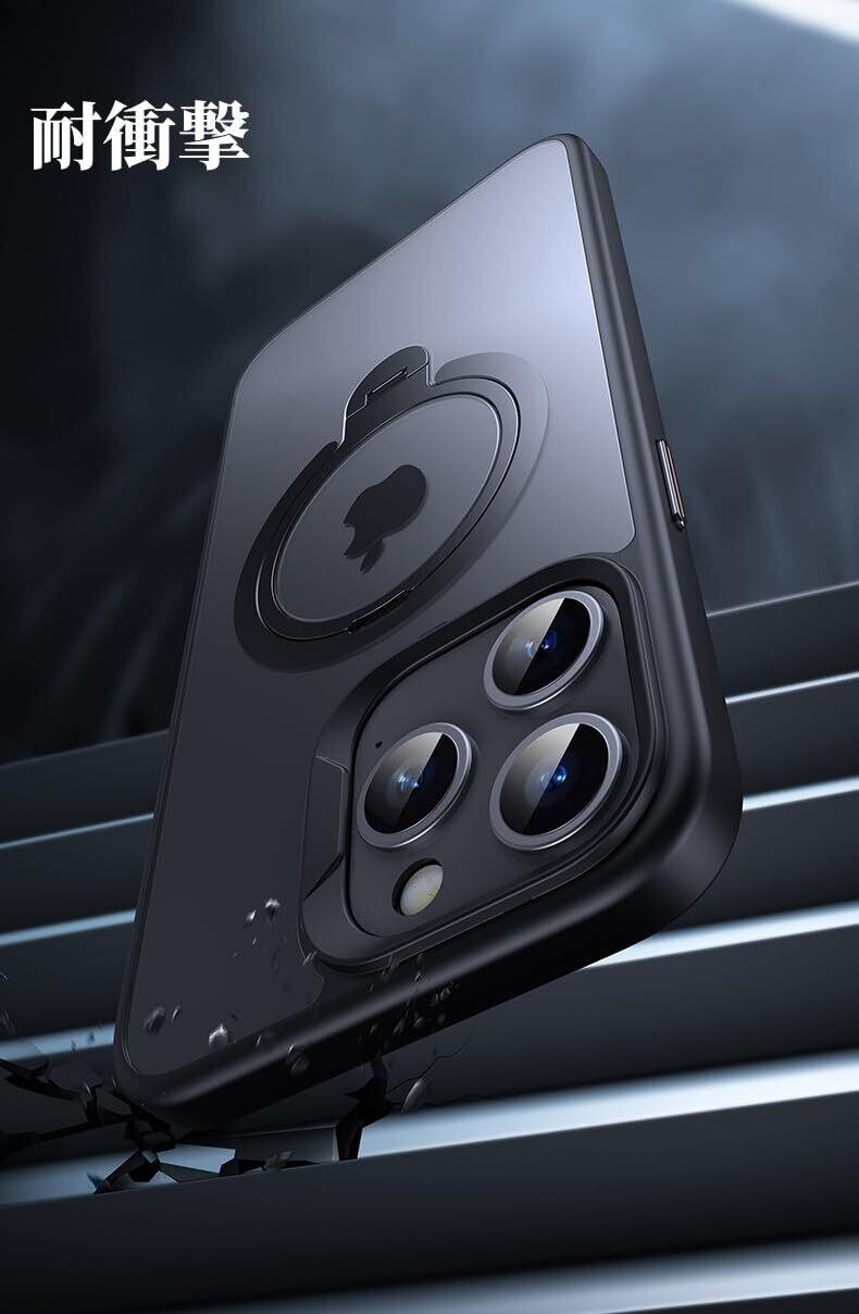 2024新登場 ダブルリング iPhone13 iPhone14 ケース Magsafe対応 縦置き 定点360度回転 フラット収納リング アイフォン 13 14 リングケース 耐衝撃 艶消し 透明 クリア マグセーフケース,黒 | impsmile