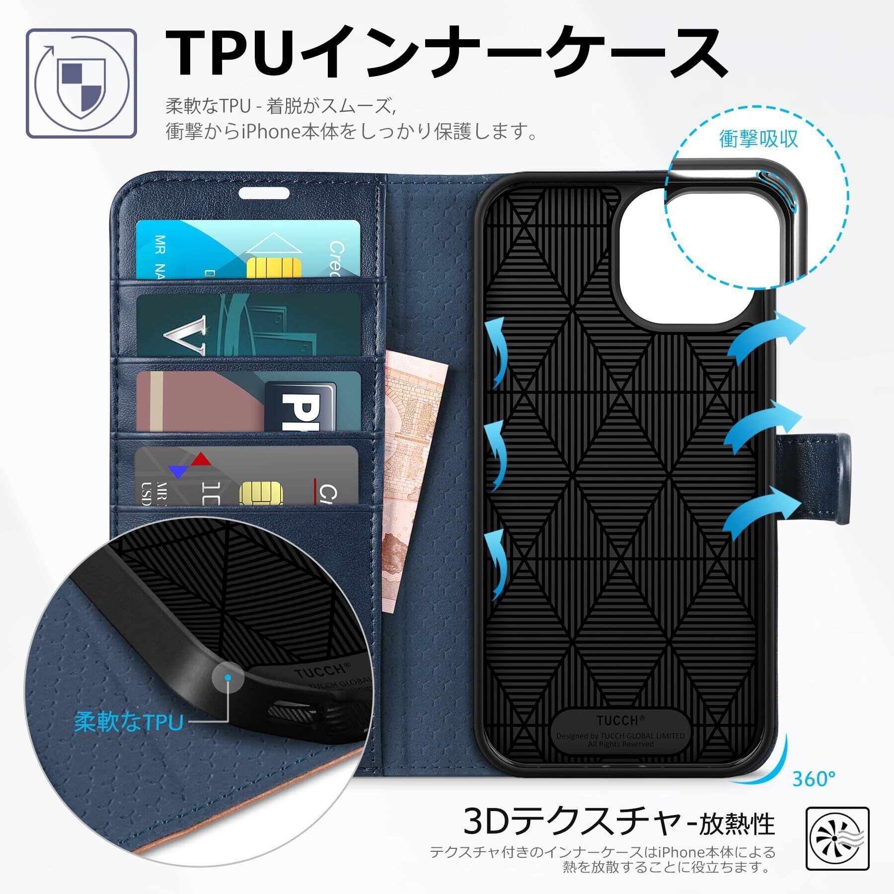 TUCCH iPhone 15 用 ケース 手帳型 iPhone15 ケース手帳型 カード収納 スタンド機能 高級PU合皮 TPU素材 全面保護 衝撃吸収 マグネット [RFIDブロッキング] アイフォン15 財布型 あいふぉん15ケース (2023年発売 iPhone 15 6.1インチ 5G 対応) ダークブル&ブラウン