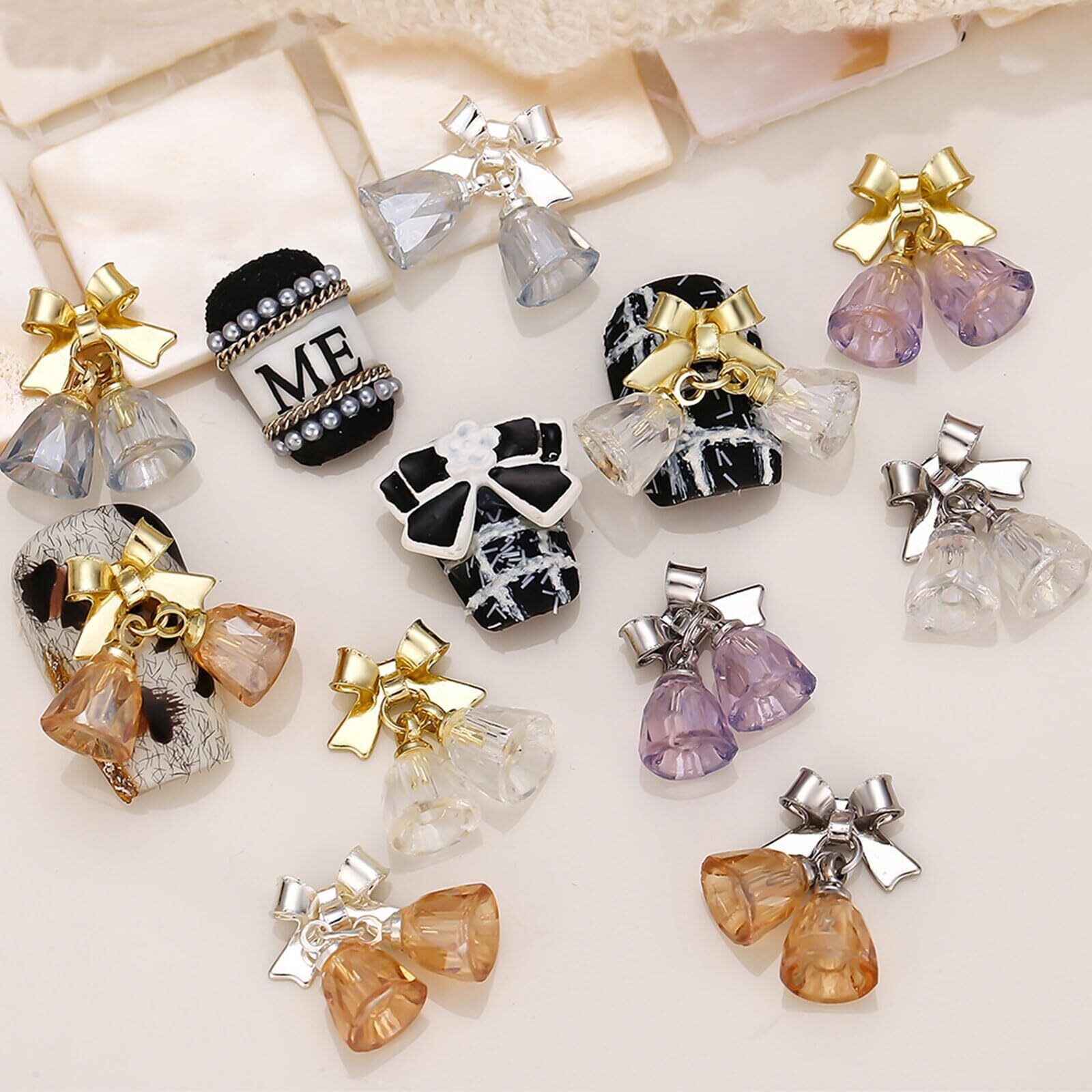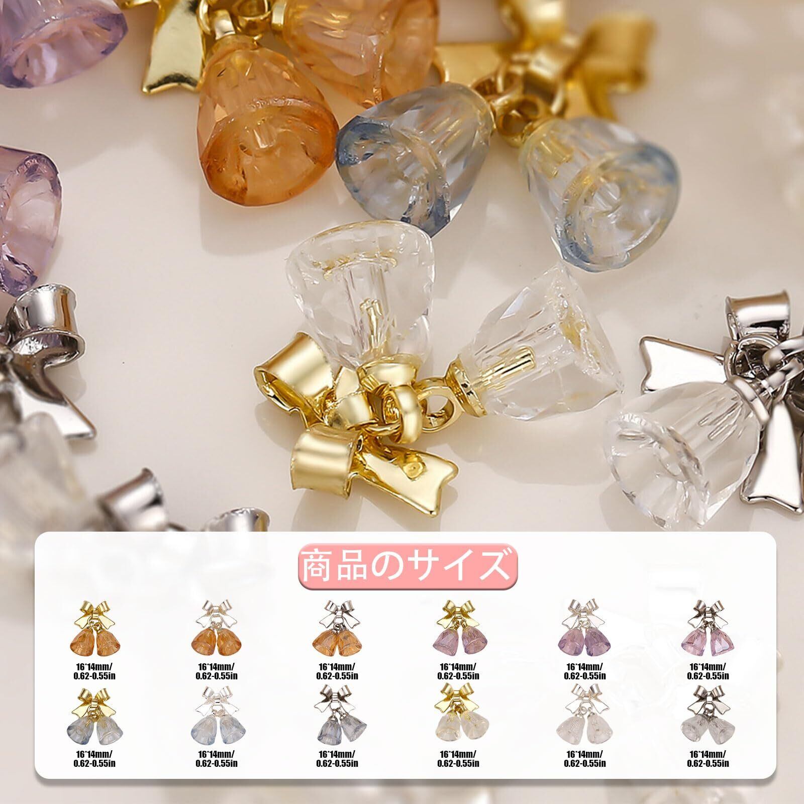 ラインストーン ネイル クリスマス 12個セット かわいい 小さい ベル ネイルストーン クリア メタル リボン付き カラフル クリスタル ジュエリーパーツ ネイルアート ハンドメイド デコパーツ | impsmile