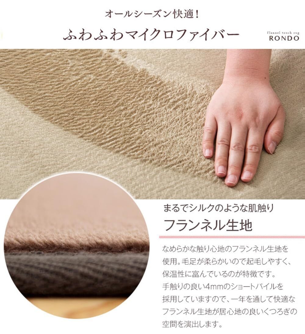 【スタッフのおすすめポイント!】 ・思わず頬ずりしたくなる、しっとりなめらかなフランネル生地 ・ご家庭の洗濯機で丸洗いが可能 ・毛足が短いのでお掃除が簡単 ・床暖房・ホットカーペット対応 ・ズレを防止する滑り止め付き