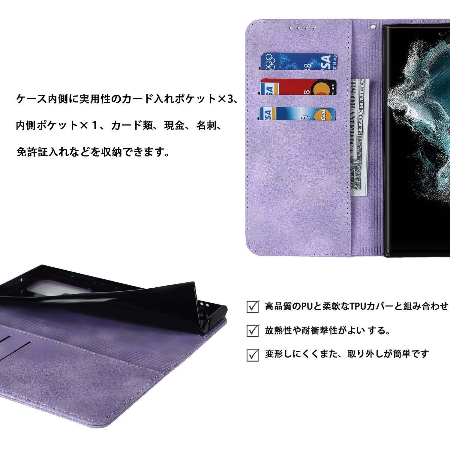 Havaya Galaxy S22 Ultra ケース ギャラクシーs22 Ultra ケース s22ウルトラ ケース 手帳型 au SC-52C カバー SCG14 ストラップ SC52C 耐衝撃 ドコモ サムスン samsung カード収納 SoftBank レザー スエードの質感-パープル | impsmile