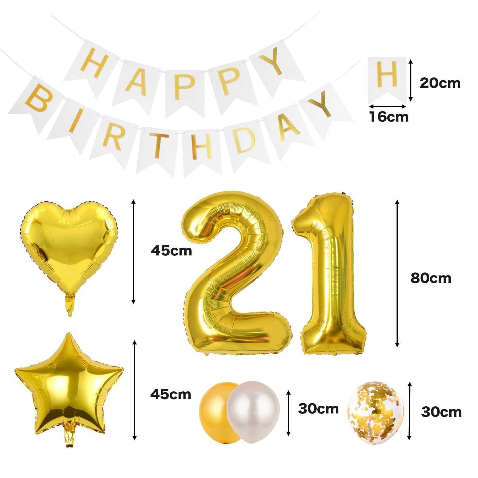 21歳 誕生日 バルーン 風船 飾り付け セット 数字バルーン 21 HAPPY BIRTHDAYガーランド ハート風船 紙吹雪風船 バースデーバルーン 大人 男の子 女の子 ゴールド | impsmile