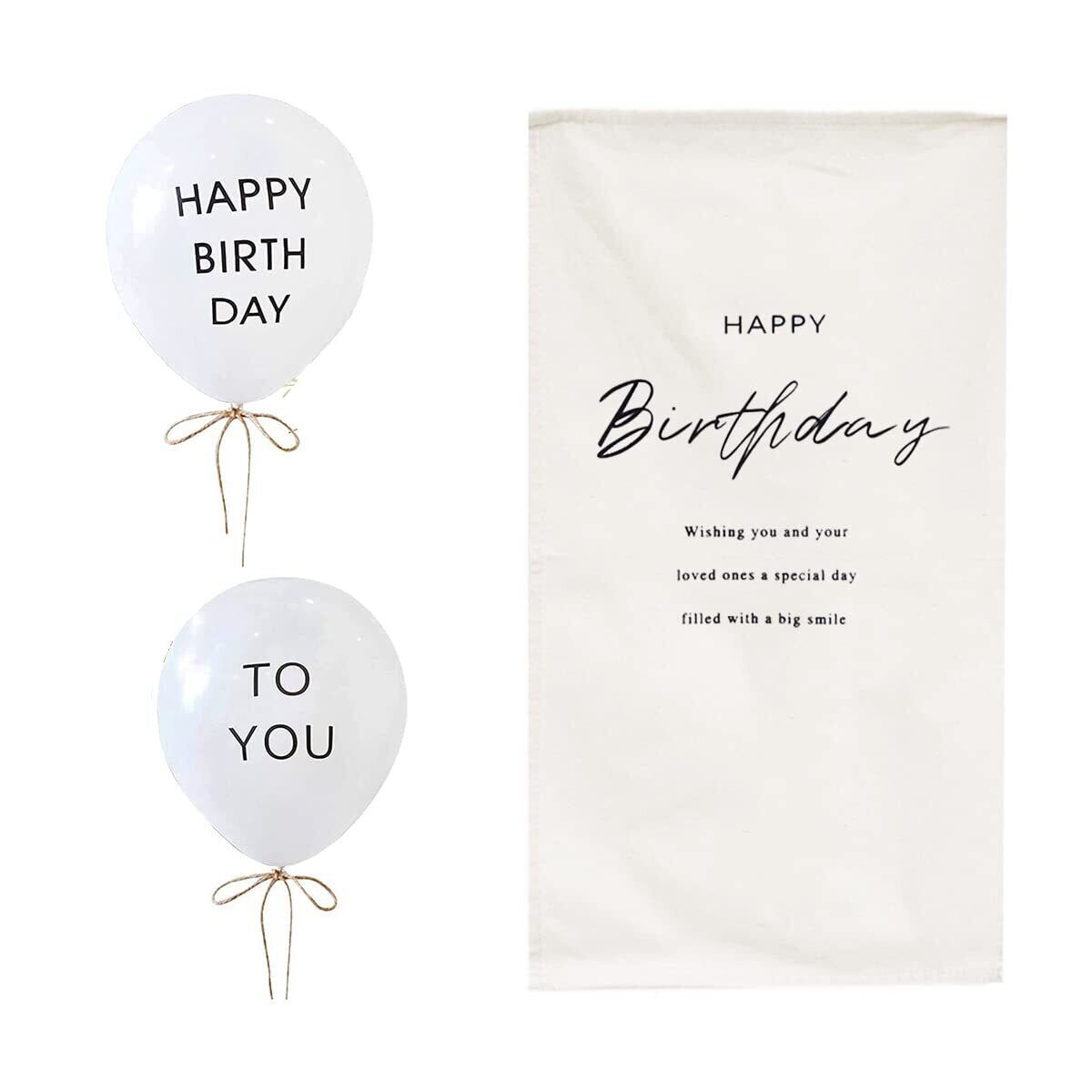 YFFSFDC バースデー タペストリー HAPPY BIRTHDAY 風船付き バースデータペストリー バルーン 誕生日飾り付けセット シンプル モノトー 100日 ハーフバースデー | impsmile