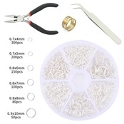 【セット内容】φ4mm(300個)、φ5mm(200個)、φ6mm(150個)、φ7mm(100個)、φ8mm(80個)、φ10mm(50個)。1本のリング、1本のペンチ、1本のピンセットを含まれています。またブレスレットやネックレスやキーホルダーなどのアクセサリーパーツとして、よく活用されています。