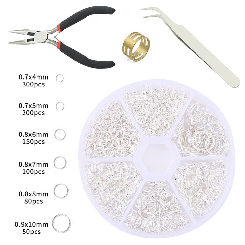 Hitasi 丸カン アクセサリーパーツ 4Mm 5Mm 6Mm 7Mm 8Mm 10Mm ピアス パーツ セット イヤリング ネックレス 金具 基礎パーツ リング ピンセット ペンチ ジュエリー修理キット DIY ハンドメイド 手芸 収納ケース付き シルバー