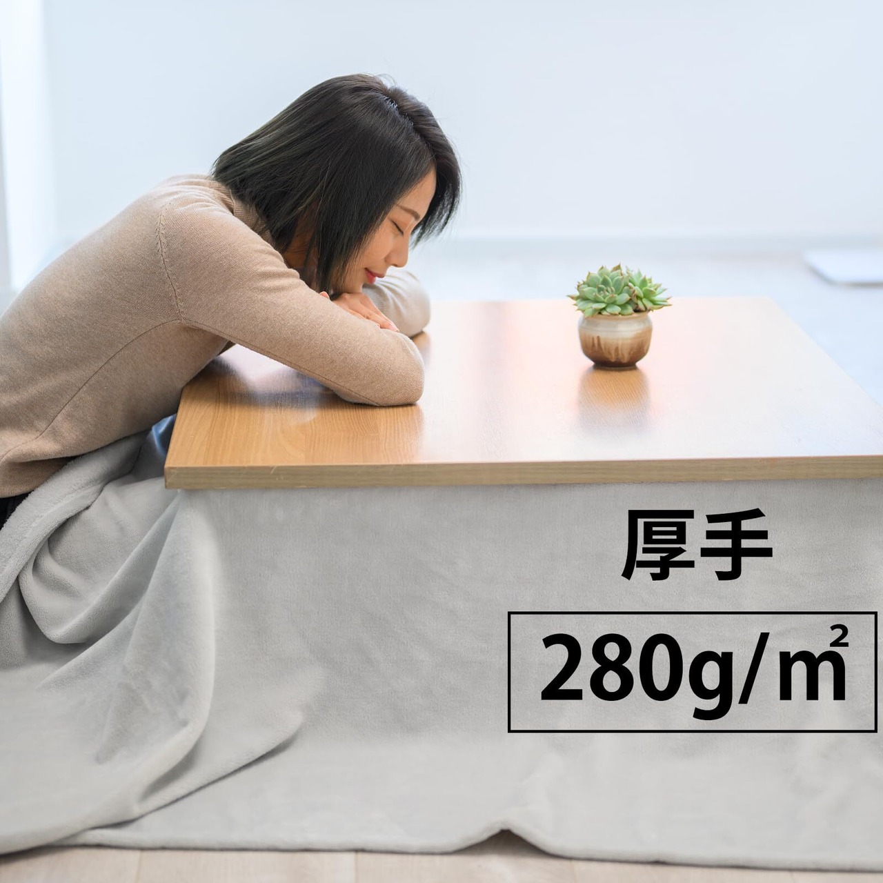 【軽量・省スペースデザイン】標準型のこたつ布団に比べ、見た目スッキリです。こたつ中掛け毛布は軽量で薄いため、持ち運びや収納がしやすく、こたつ掛け布団と重ねたご使用に適しています。