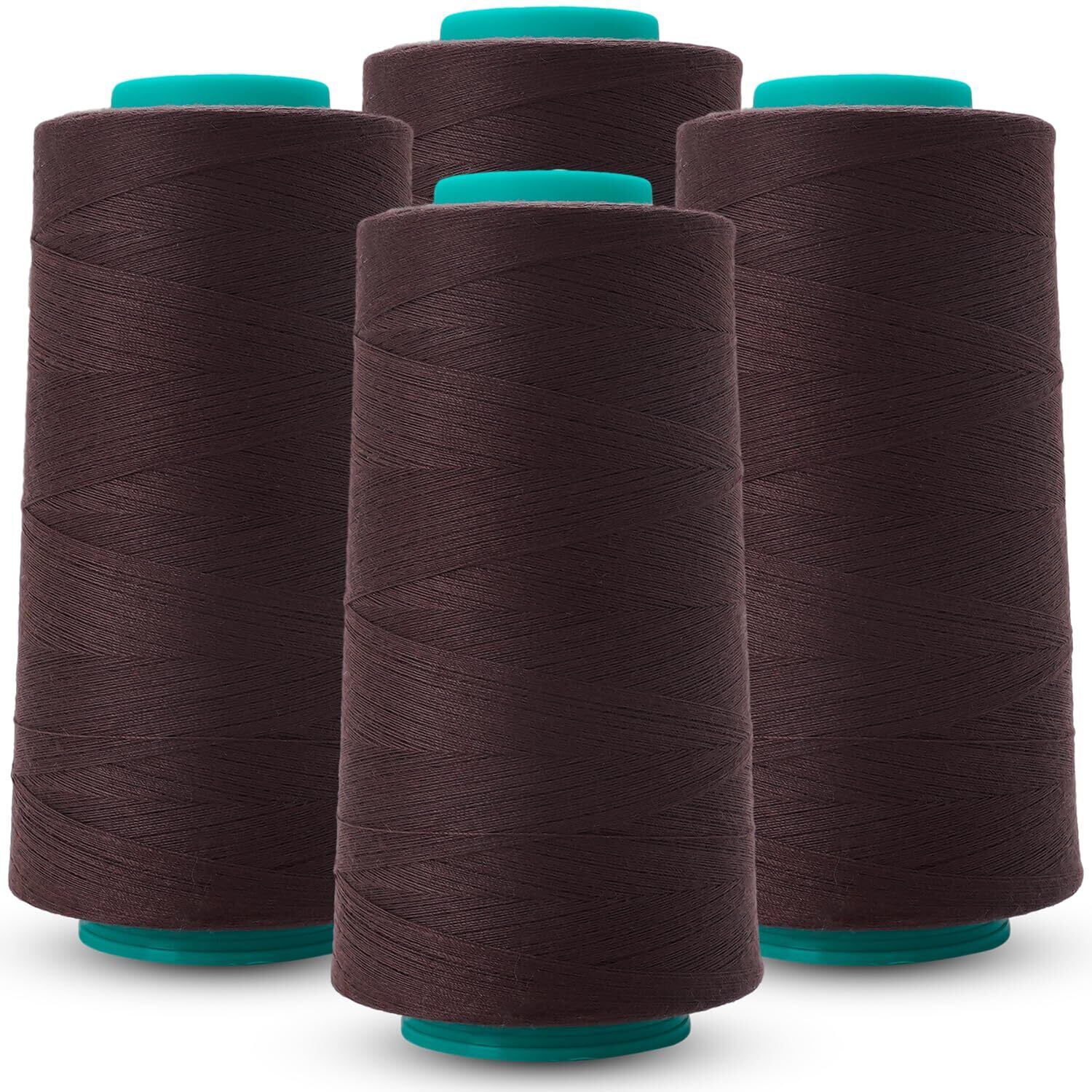 **[ミシン糸 セット 60番 ロックミシン糸 3000m巻x4個 スパン糸 大容量 業務用 工業用 家庭ミシン用 キルティング 糸 普通地用 手縫い糸 裁縫糸 基本色 常備色 (ダークブラウン)] あなたの裁縫ライフをサポートするミシン糸セット!**