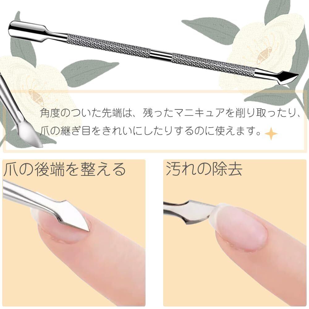 キューティクルプッシャー ネイルツール 1個セット 両面甘皮処理 甘皮ケア 甘皮の除去に 長さ12.5cm ステンレス製 耐久性 錆びに 滑り止 防水 使いやすい ネイルオフ ジェルネイル用 ネイル用品 (プッシャー&尖ったシャベルで) | impsmile