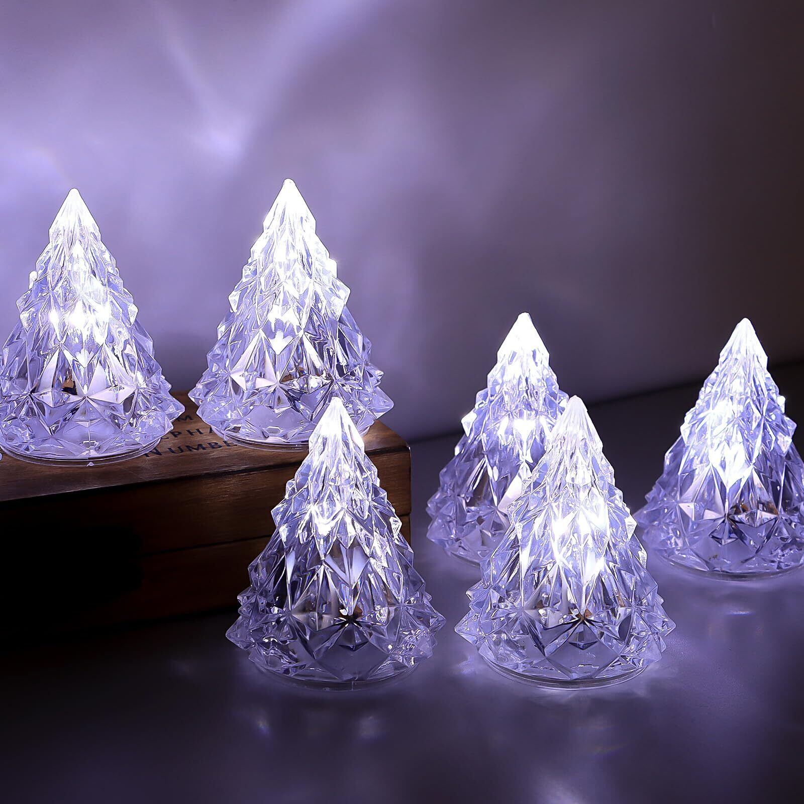 CINECE クリスマス 飾り LED イルミネーション 卓上 8個・電池付き 光る 置物 電飾 室内 インテリア プレゼント 撮影 おしゃれ かわいい ミニ ツリー クリスタル (ホワイト) | impsmile