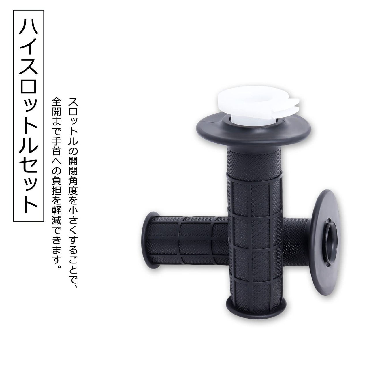 【パッケージ内容】スロットルホルダー*1、グリップ*2、スロットルワイヤ*1。