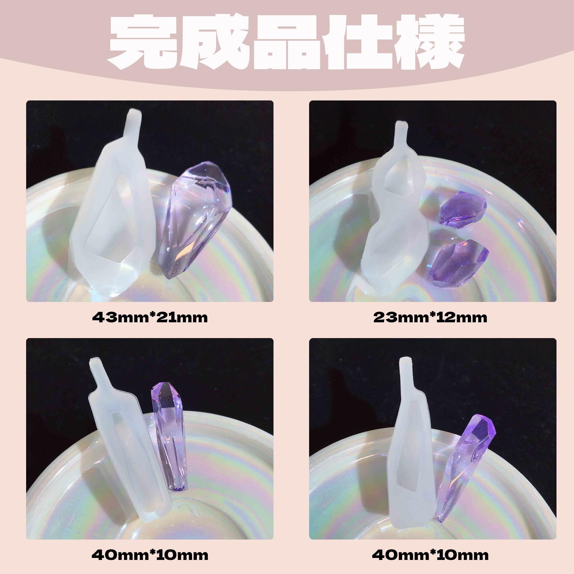 【製品特徴】MAEXUSのレジンシリコンモールド4個セットで、クリエイティブな作品づくりを楽しんでみませんか?ダイヤや鉱石風のデザインが施されたモールドで、水晶風のペンダントを気軽に制作することができます!