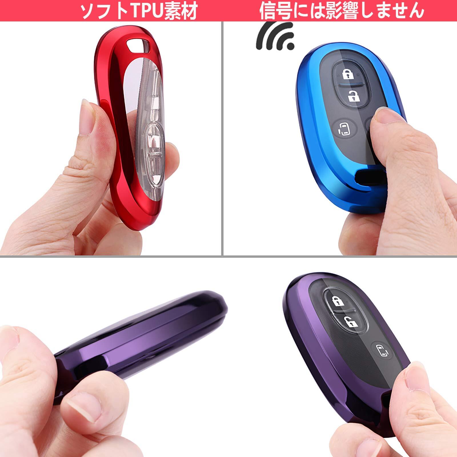 【MDee】 スマートキーケース スズキSUZUKI 新型エブリイワゴン スペーシア ワゴンR パレット ラパン MRワゴン アルト ターボRSワークス ルークス ハスラー ソリオ バンディット デリカD2 スイフト バレーノ イグニス エスクード 適用優質なTPU材料を使用して、耐衝撃、スクラッチ防止、でファッションなスマートキーホルダー -パープルブラック