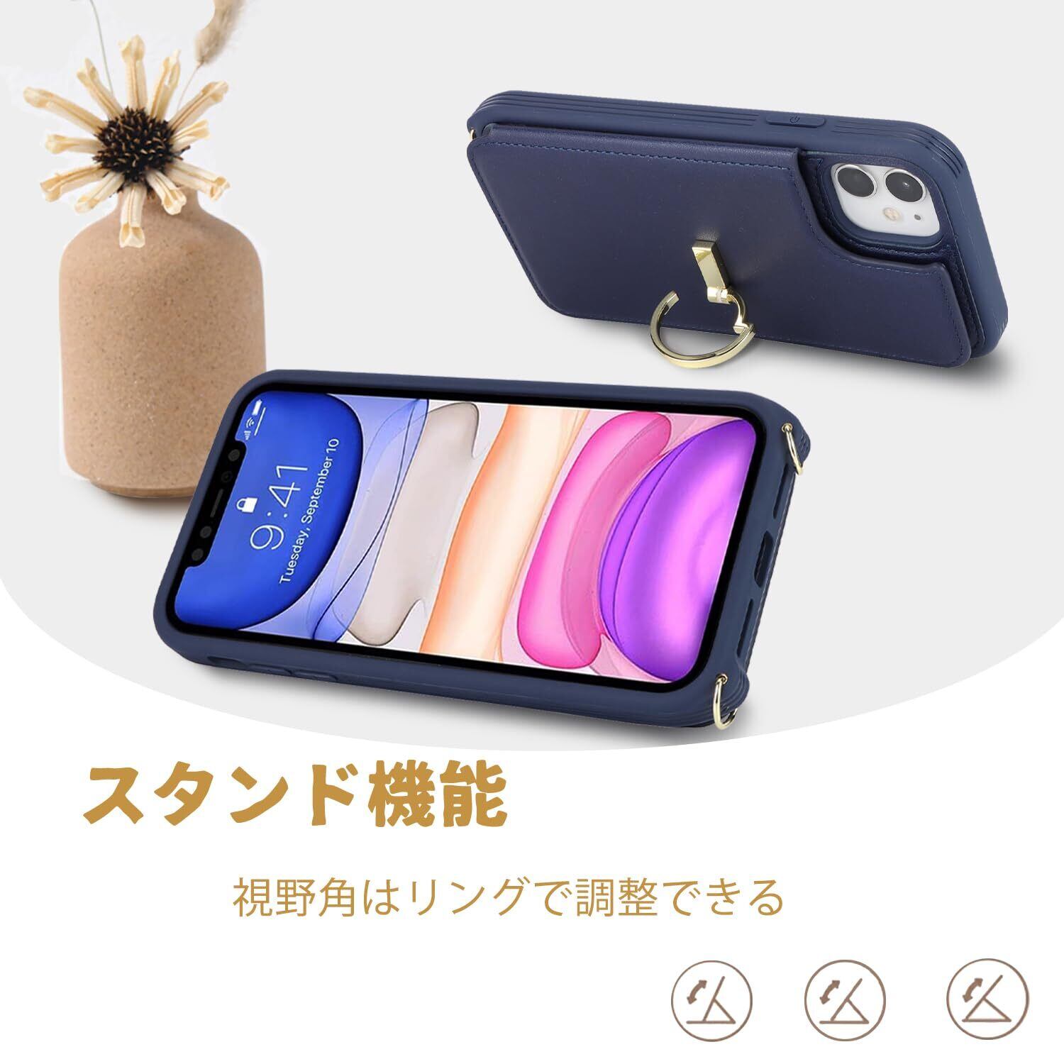 Havaya スマホショルダー iPhone11ケース iphone 11 ケース スマホケースiphone11 ショルダー リング付き レザー 肩掛け カード収納(アイフォン11 /あいふぉん11/いphone11/アイホン11 6.1インチ対応)-ブルー