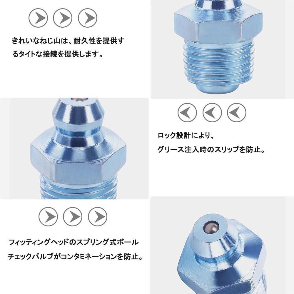 【耐久性のある素材】グリースニップル継手は亜鉛めっき高品質の金属材料で作られて、堅牢、耐腐食、耐高温、耐摩耗、さびにくい特徴がある。耐久性のある材質のため、使用時間が長くなります。