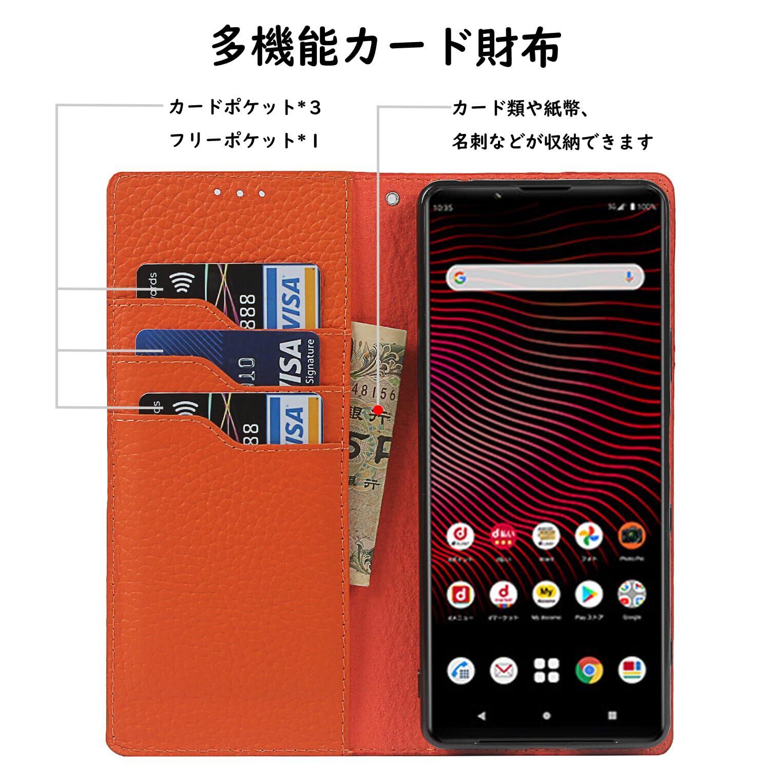 Havaya 対応 Xperia 1 III ケース SO-51B ケース SOG03 ケース 手帳型 本革 ストラップ ソニー docomo エクスペリア1iii 第3世代 au 耐衝撃 カバー SoftBank カード収納 スタンド機能 レザー -オレンジ | impsmile