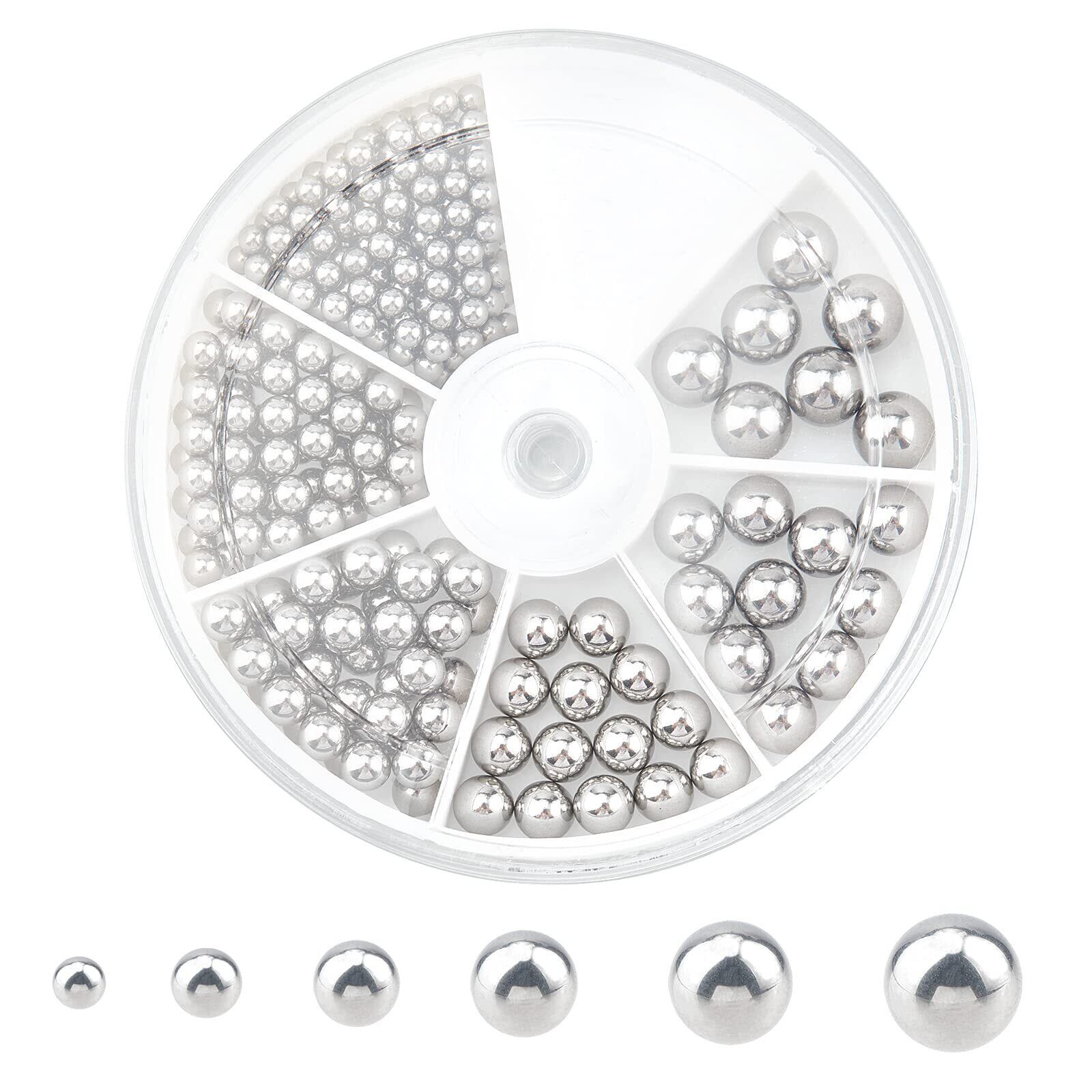 UNICRAFTALE 約290個 6サイズ 穴なし 鋼球 丸玉 ステンレスパール ラウンドビーズ 無穴 金属 メタルビーズ ネイルアートパーツ アクセサリーパーツ クラフト用品 手作り素材 DIY材料 | impsmile