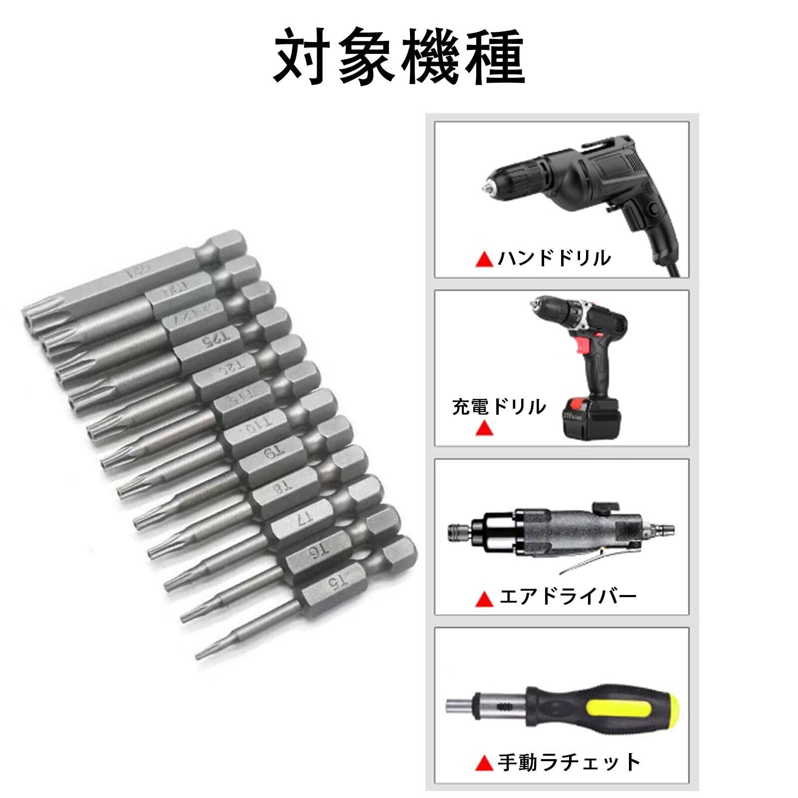 トルクスドライバー 50mm 六角軸 6.35mm ビ ット中空トルクス頭 T5-T40 S2鋼ドライバービ ット 磁気 トルクス星ネジ用ビ ットセット 六角ビ ット ドリル ビ ット工具 12本セット | impsmile