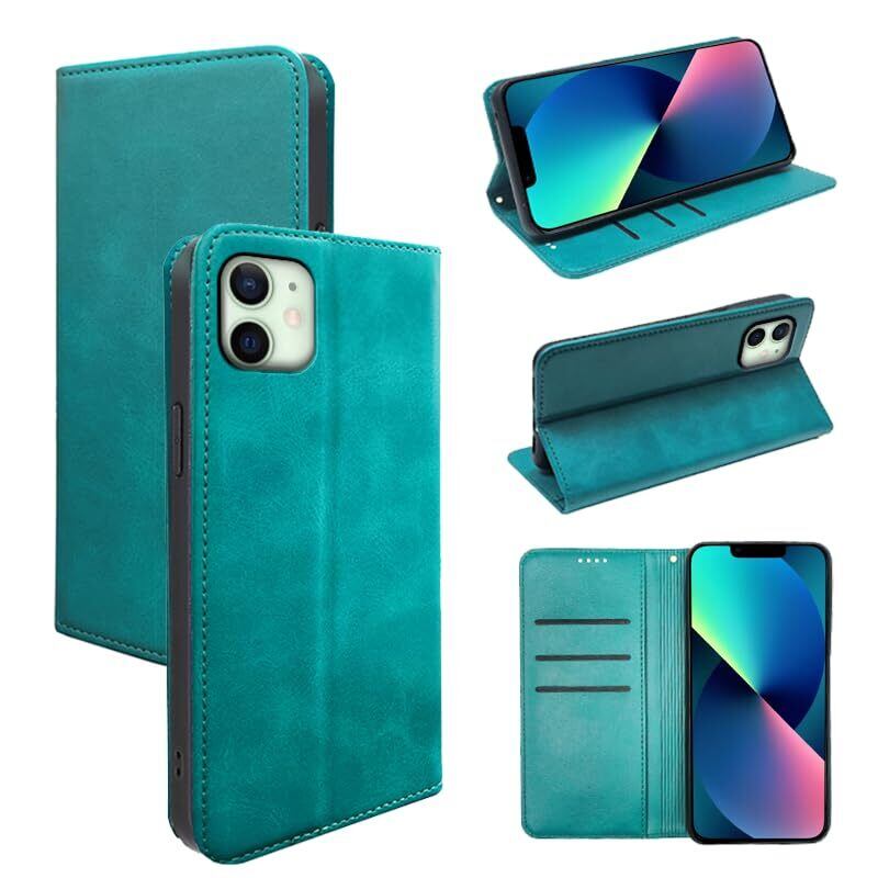 適用 iPhone12 mini ケース 手帳型 適用 iPhone 12mini 手帳型ケース スマホケース カバー 手帳型 PUレザー カード収納 財布型 耐衝撃 ケース マグネット スタンド機能付き 5色(いphone12 mini 用 ケース手帳型) (グリーン)