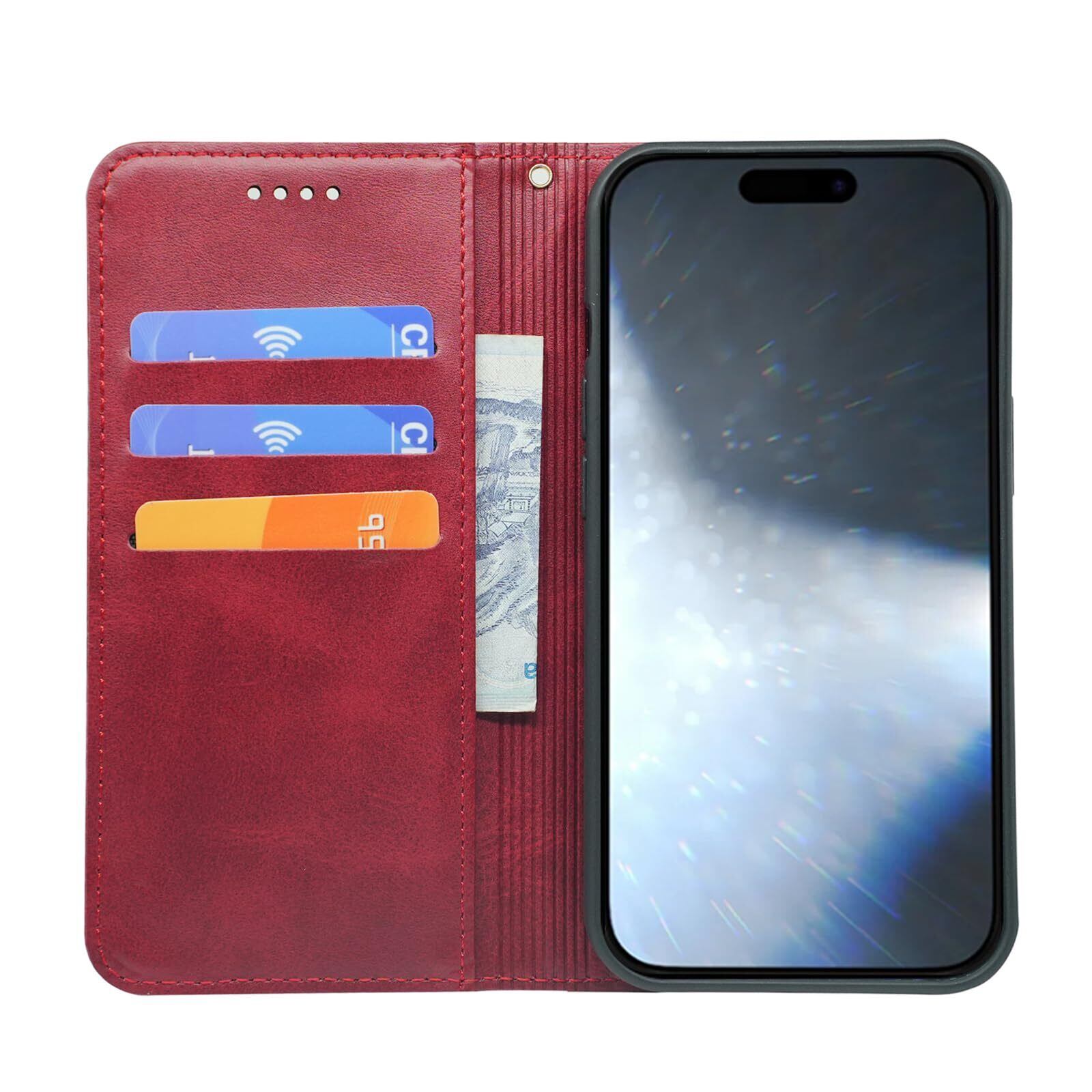 適用 iPhone16 Pro Max ケース 手帳型 いphone16 Pro Max 用 手帳型ケース iPhone16ProMax 用 スマホケース カバー 手帳型 PUレザー カード収納 財布型 耐衝撃 ケース マグネット スタンド機能付き 5色(いphone16 Pro Max 用 ケース 手帳型) (レッド)