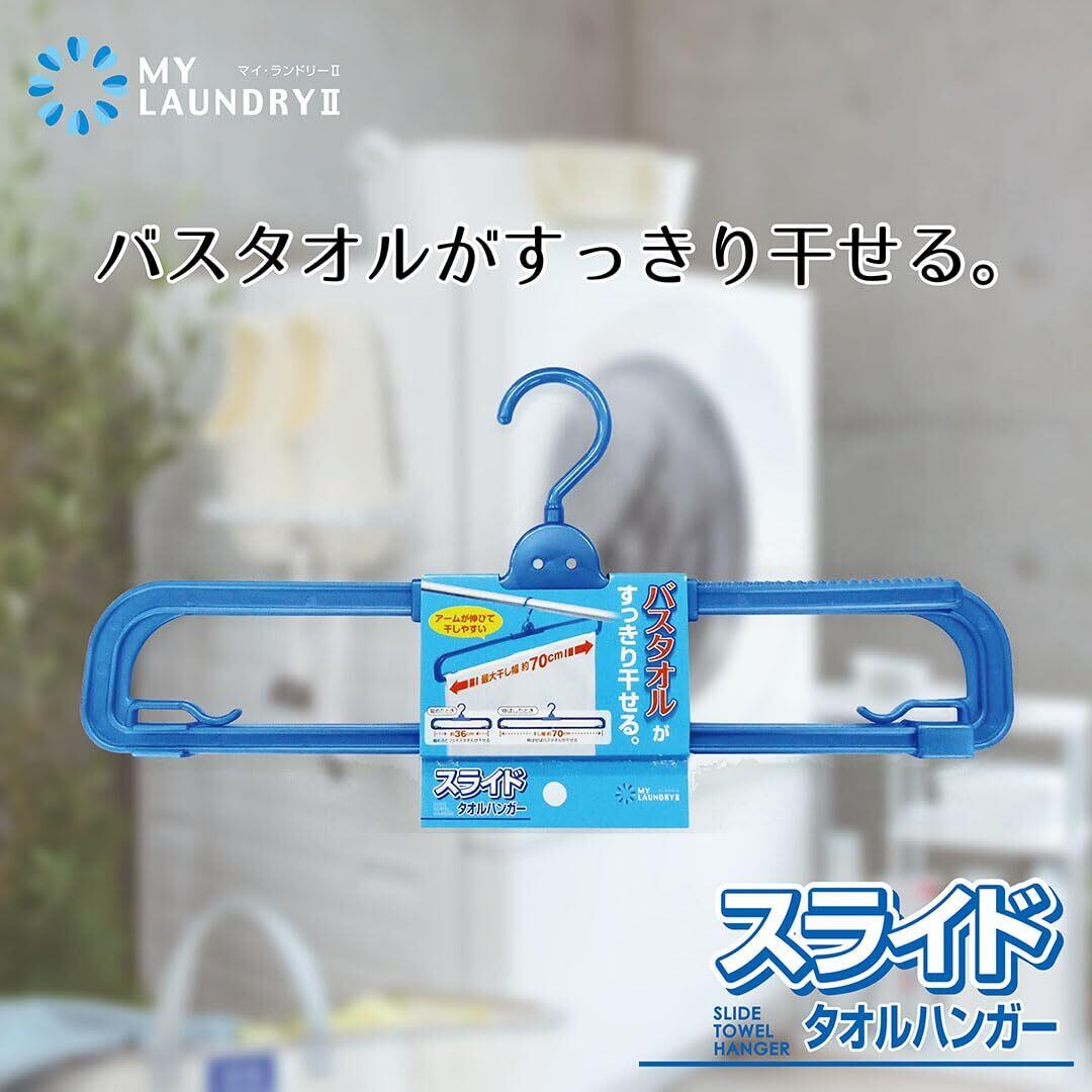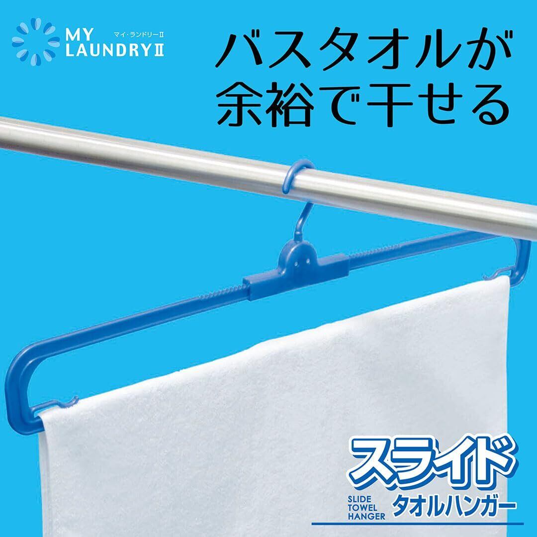 洗濯 物干し ハンガーマイランドリー2 スライド タオル ブルー 最小幅36cm~最大幅70cm バスタオル すっきり干せる