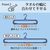 ●アームが伸びて干しやすく、縮めるとフェイスタオル、伸ばせばバスタオルが干せます。