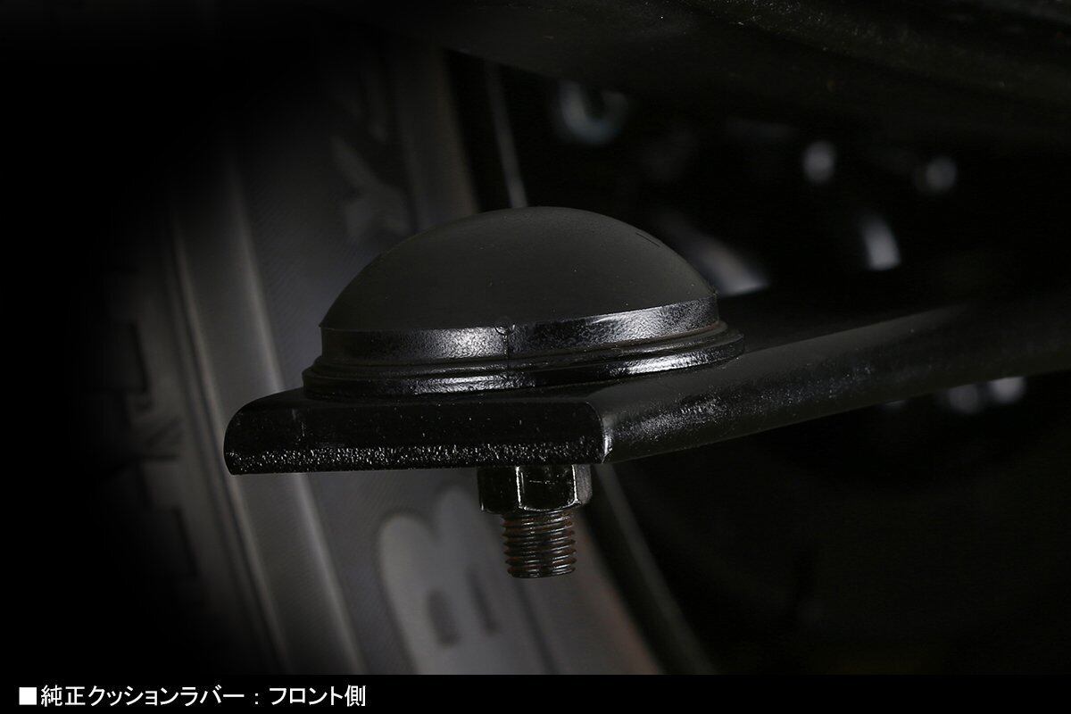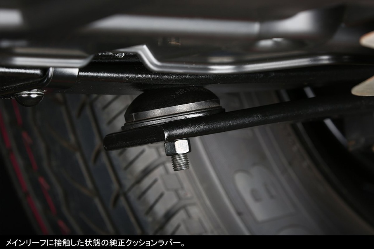 ●ローダウン仕様車に限らず、あらゆる車高に対応しています。●当製品をヘルパーリーフのフロント側へ装着することで車高が約5ミリダウンします。※車両のグレードや個体差、積載重量によっても変動します。●当製品は保安基準適合品ですが、車検については検査員の判断が優先されますのでご注意ください。当製品には硬度の低い合成樹脂を使用しています。経年使用に対して、変形・潰れの発生する可能性のあることをご理解ください。