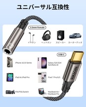 ユニバーサルな互換性:このUSB Type-Cから3.5mmオーディオ変換アダプターは、Type-Cポートを搭載したデバイスに対応しています。例えばiPhone 17/16/16 Pro Max/ iPhone 15シリーズ/iPad Pro/MacBook/Samsung/Google Pixel/OnePlusなど。