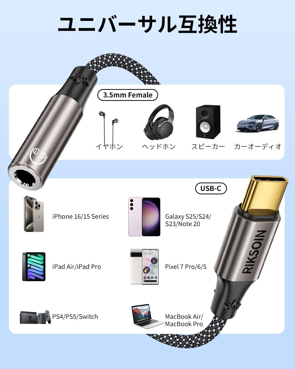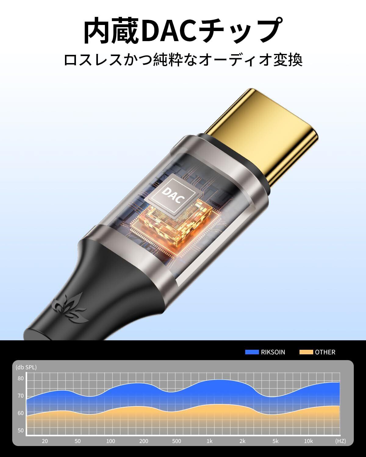 【内蔵DACチップ-高忠実度サウンド】RIKSOIN USB-C to 3.5mm イヤホン変換アダプターは高品質オーディオDACデコードチップを採用し、音質伝送がより安定。高品質な音楽体験をお楽しみいただけます。