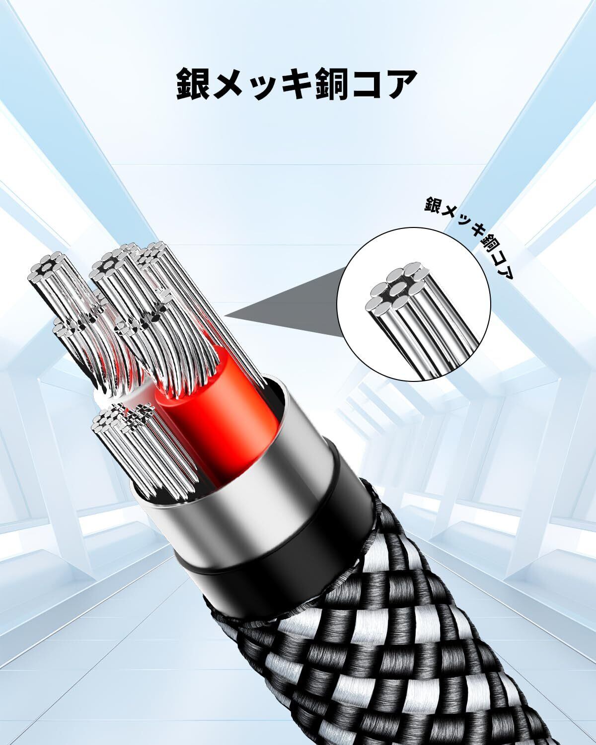 高音質素材:銀メッキ銅コア+金メッキコネクタを採用し、伝送速度が安定し、全体的な音質が豊かになり、信号損失が少なく、音質がクリアになります。 使いやすいだけでなく、良い音で音楽を楽しめます。