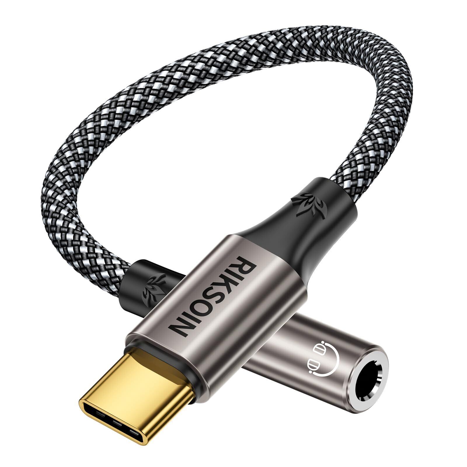 USB-C to 3.5mm イヤホン変換アダプター 銀メッキ銅芯 USB-Cイヤホンジャック変換アダプター DAC搭載 ナイロン編み高耐久ケーブル イヤホン/ヘッドホン/マイク/スマートフォン/タブレット対応 音量調節機能付き 【iPhone 17/16 Pro/15 Pro Max/15 Plus/iPad/Mac/Android対応】