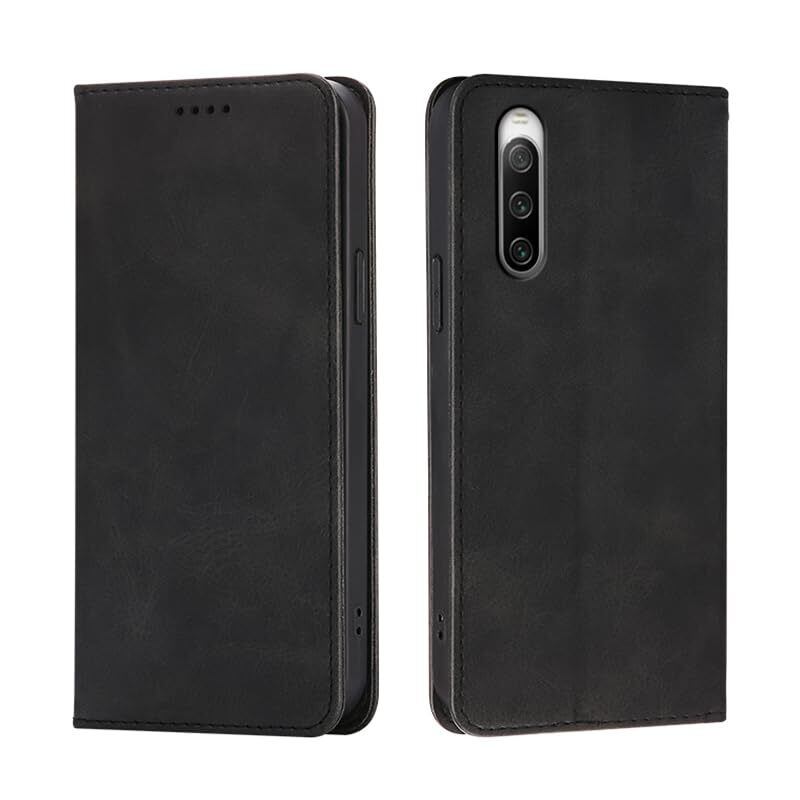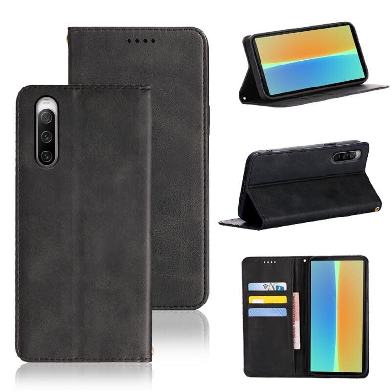 に適用する Xperia 10 IV ケース 手帳型 に適用する エクスペリア10 IV SO-52C / SOG07 手帳型 ケース カバー PUレザー カード収納 財布型 耐衝撃 ケース マグネット スタンド機能付き (ブラック)