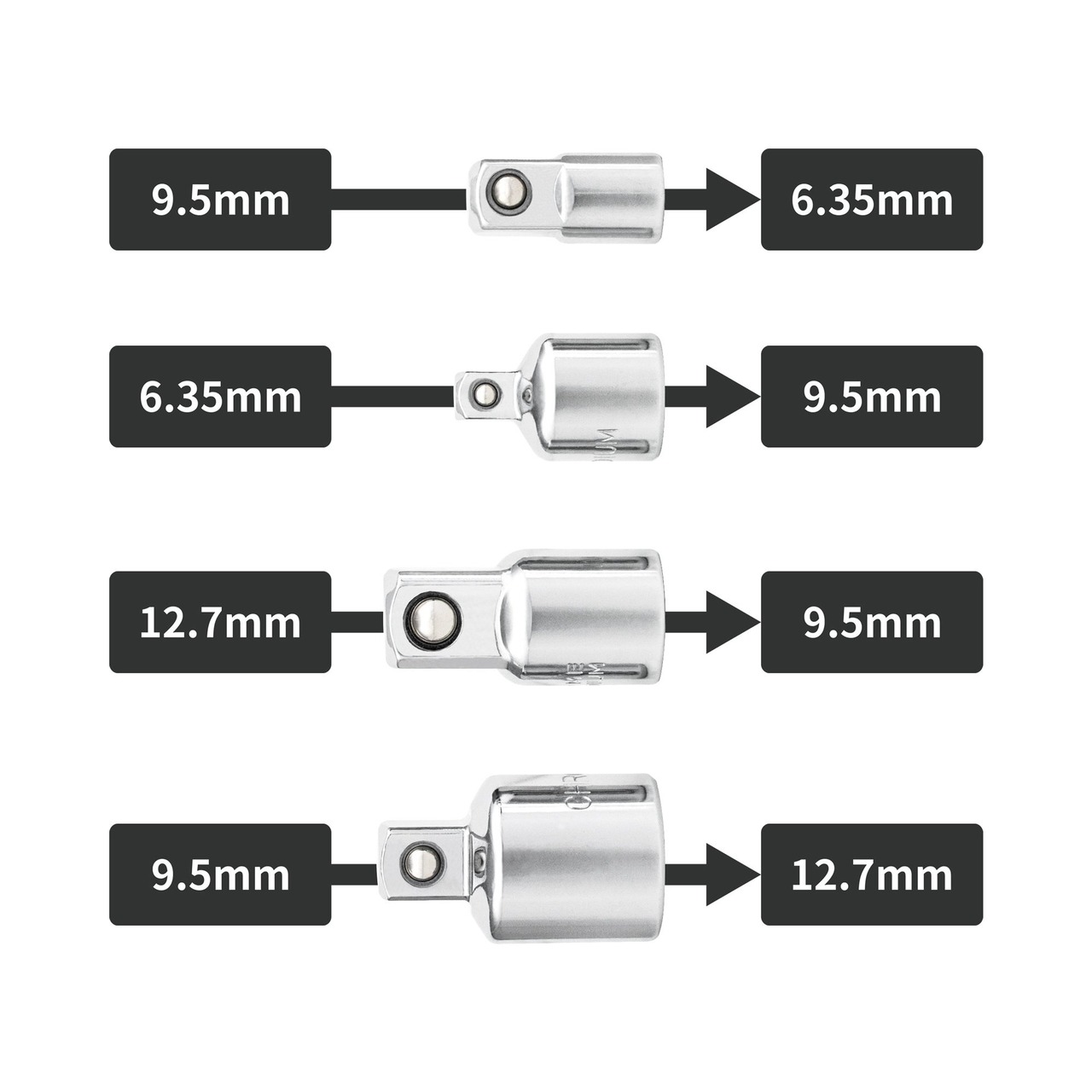 セット内容:凹6.35mm×凸9.5mm、凹9.5mm×凸6.35mm、凹9.5mm×凸12.7mm、凹12.7mm×凸9.5mm